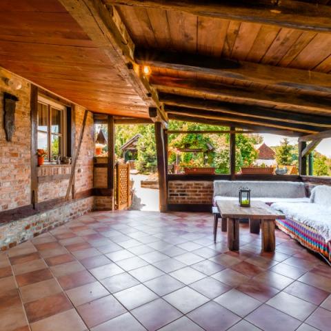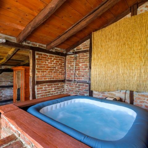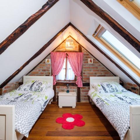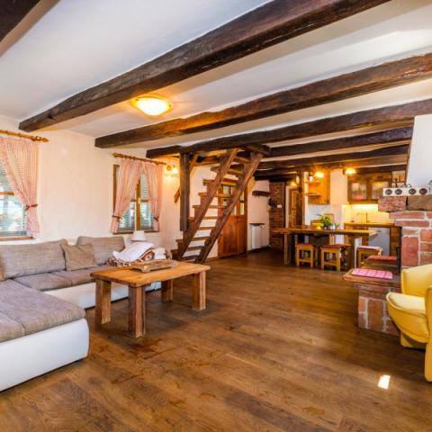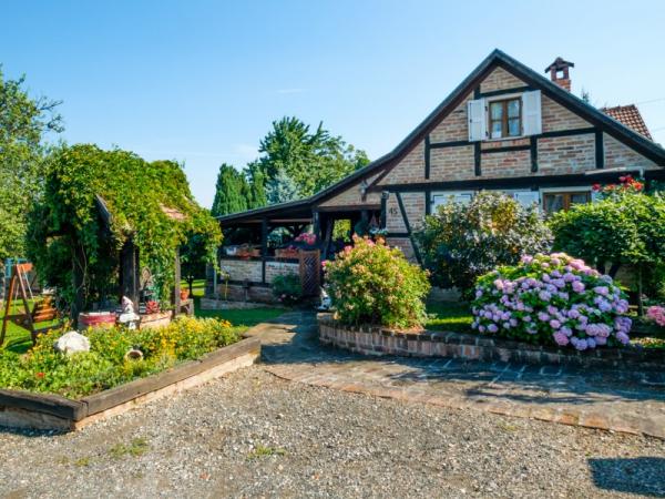 La casa está construida con roble viejo y ladrillos rojos, está restaurada con mucho amor y ahora es una combinación perfecta de tradición y confort. En el ático hay un espacio abierto con una cama doble y una habitación con dos camas más pequeñas. Las vigas y los ladrillos visibles le dan un encanto especial. La espaciosa planta baja consta de una cocina, sala de estar, 1 dormitorio y un baño compartido. En el centro de la residencia hay una gran chimenea en frente de la cual hay una cama angular que puede servir como 2 camas adicionales. Aquí hay un televisor y un proyector. Una pequeña cocina hecha a mano contiene todo lo que pueda necesitar: un plato para cocinar, un plato, un lavaplatos, un hervidor y cubiertos, tazones y ollas. Algunos suministros como sal, pimienta, harina, arroz, aceite ... siempre te darán la bienvenida. Detrás del dormitorio hay una cama doble y un baño compartido con cabina de ducha, lavadora y secadora. Conectado a la casa hay una amplia terraza con una mesa grande, bancos y una barbacoa a la parrilla. Amplio jardín, columpios, pequeño huerto son solo algunos de los contenidos exteriores.