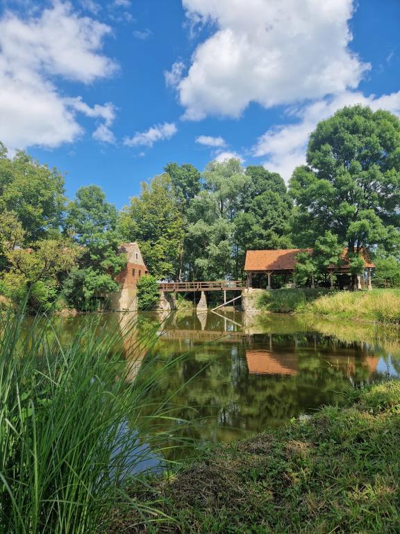 Casa de vacaciones "U Mlinu" - In Millhouse se encuentra a una hora en coche de Zagreb, cerca de las ciudades de Kutina, Lipik, Daruvar, Novska. Se tarda 5 minutos en caminar hasta el primer asentamiento. La propiedad en la que se encuentra la casa es grande y espaciosa. En el patio hay un lago, un pequeño puente, un aserradero y un molino que le dan un toque de tradición a todo el lugar, aunque la decoración tanto de los espacios externos como internos se realiza combinando lo moderno y lo tradicional. En las inmediaciones de la casa de vacaciones se encuentra el río Pakra, a unos 30 metros de la casa. El interiorismo se plantea como un espacio cálido, alegre y agradable para pasar el rato con amigos o reuniones familiares. La casa está equipada con los electrodomésticos necesarios, el baño también dispone de artículos de primera necesidad (papel, toallas, secador de pelo). Las habitaciones también cuentan con ropa de cama, frazadas y lugares para guardar la ropa.