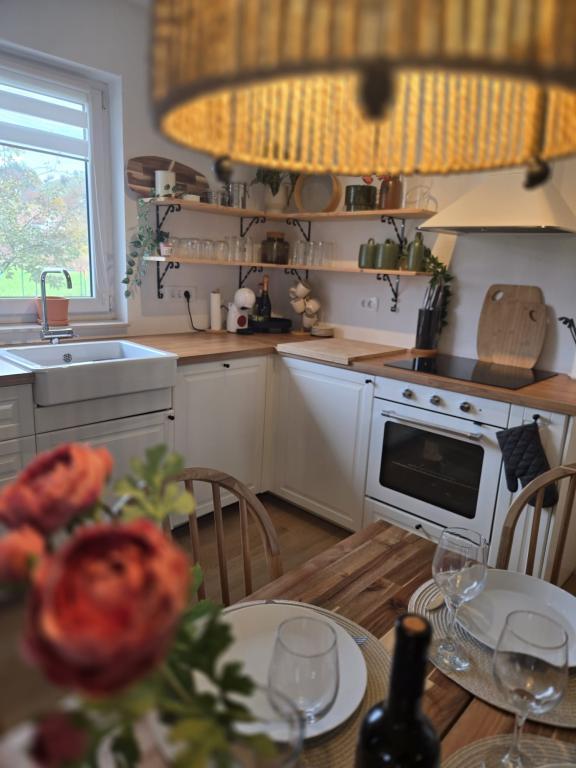 Den Family Home es un oasis de paz y tranquilidad. La espaciosa casa, que está totalmente a su disposición, proporciona un ambiente hogareño en el pueblo y sus alrededores. Al lado de la casa también tienes una auténtica taberna de cazadores con chimenea y cocina equipada donde podrás disfrutar preparando comidas o socializando. La vista desde la ventana de campos y bosques ofrece momentos únicos de relajación. Después de aparcar tu vehículo en el garaje, olvídate del bullicio de la ciudad, lo único que te queda es puro descanso y la unión de la naturaleza y el hombre. Se admiten mascotas. La casa está totalmente equipada para un máximo de 8 personas.