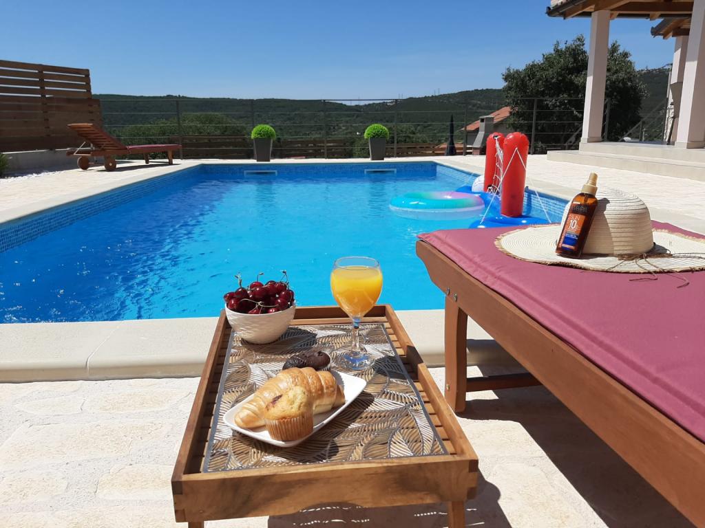 Casa de vacaciones "FoRest House" con piscina, se encuentra en el borde de un bosque de coníferas en un distintivo Rakovo Selo en Dubrava cerca de Sibenik, a sólo 5 kilómetros de la primera playa y el centro de Sibenik. La vista magnética de la Dubrava verde y el hermoso cielo azul, el aroma celestial de la vegetación mediterránea del bosque cercano y las ricas instalaciones con las que está equipada la casa permiten al huésped, por un lado, un descanso ideal de la agitada vida cotidiana. conforman todo ese patrimonio urbano que el huésped quiere respirar, al alcance de su mano. FoRest House es simplemente un lugar donde casi puedes sentir el descanso, sentir la paz prístina y apropiarte plenamente del momento de puro disfrute. El edificio consta de una casa-55m2 y el entorno-800 m2. La casa consta de dos habitaciones (TV), cocina, comedor, sala (TV), pasillo y dos terrazas cubiertas. Junto a la casa hay piscina, parque infantil, barbacoa y mesa de ping-pong y 2 plazas de aparcamiento.