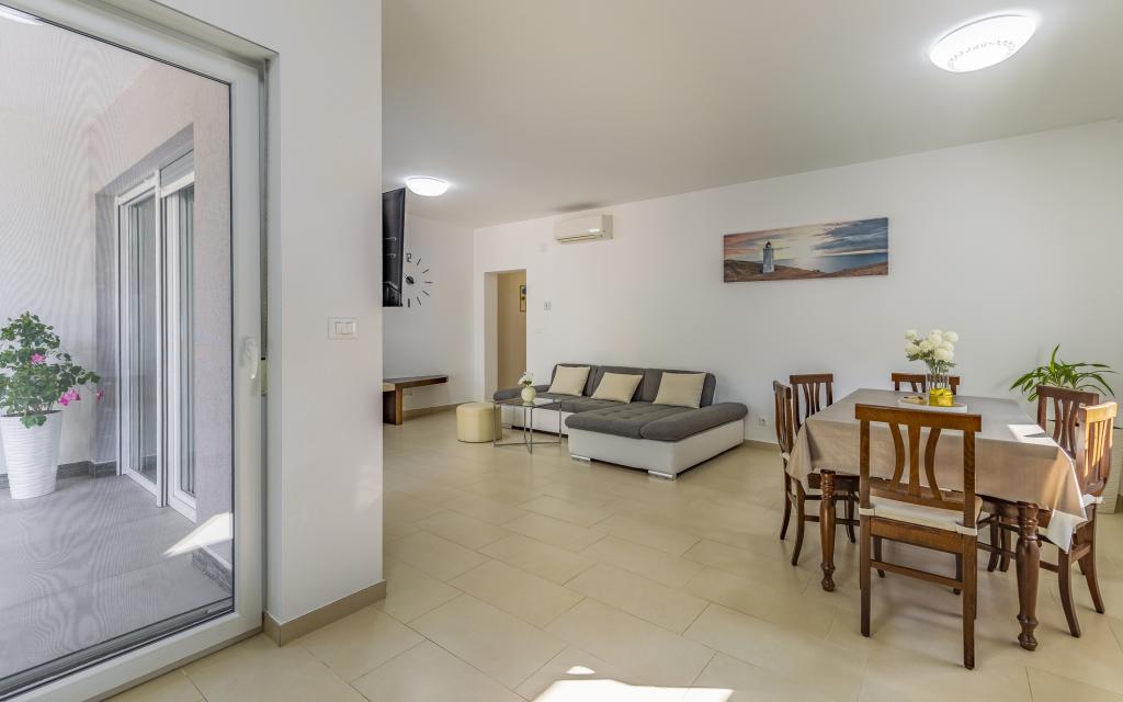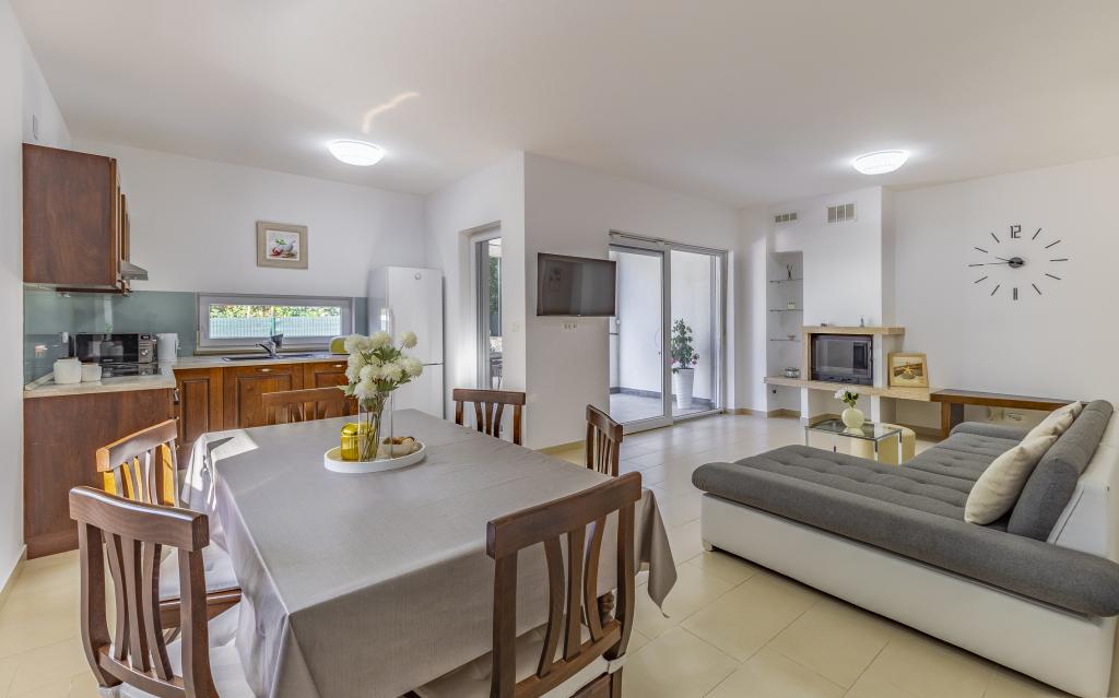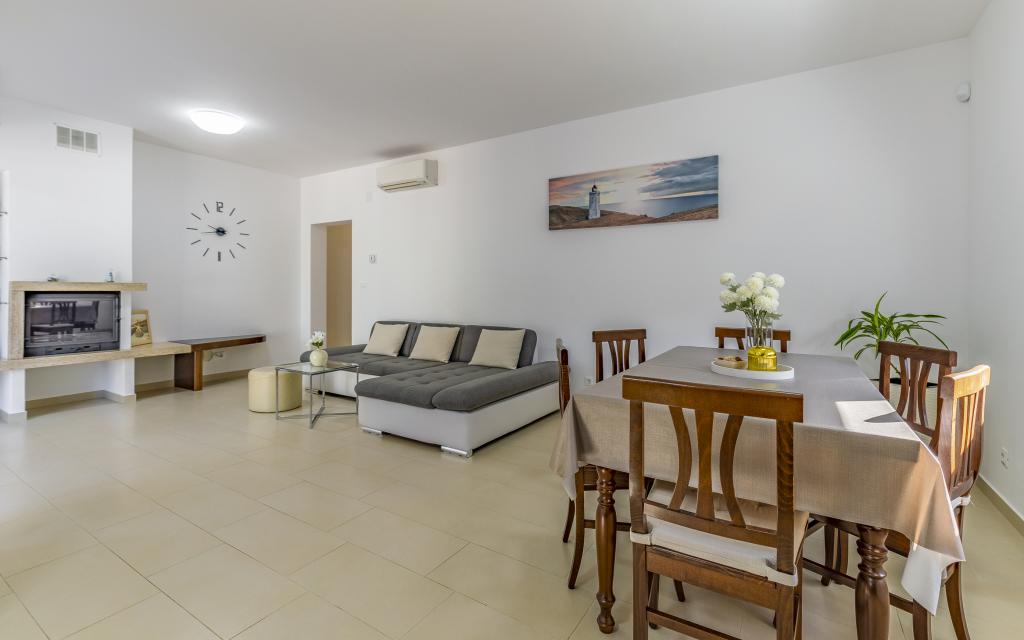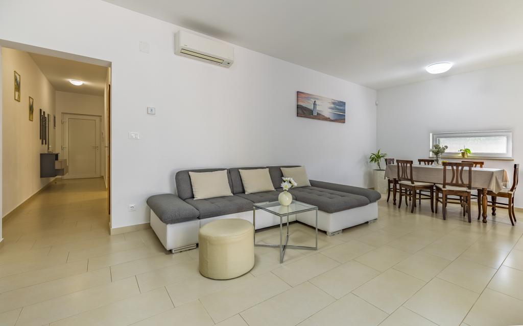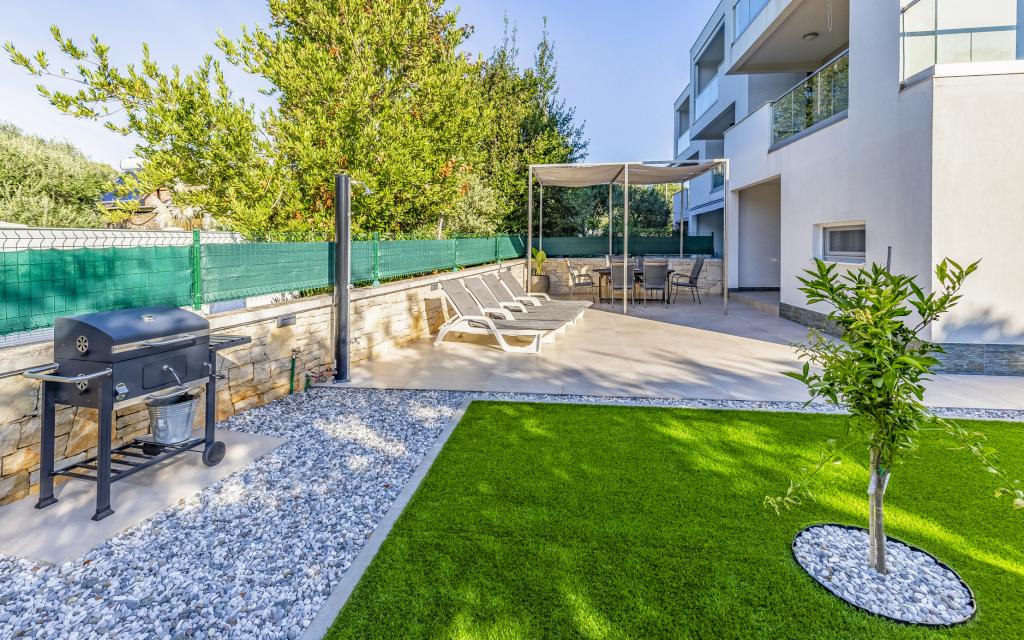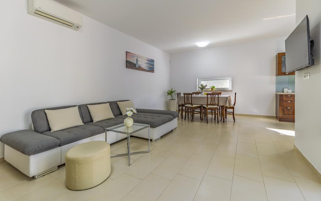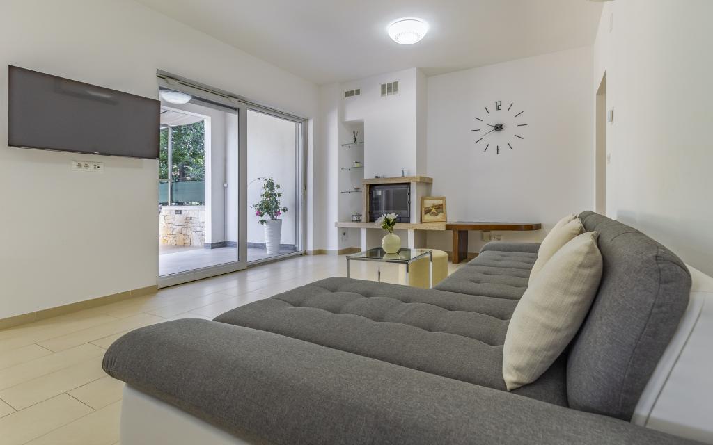 Apartamento (80 m²) completamente amueblado y con acabados de alta calidad, en una excelente ubicación en una zona tranquila de Banjol, a solo 5 minutos (300 m) a pie de las playas más bonitas de la zona. El apartamento se encuentra en la planta baja de un edificio residencial de solo tres apartamentos. Cuenta con un jardín privado (100 m²) con terraza, mesa, tumbonas, ducha exterior y barbacoa, ideal para disfrutar de una agradable charla con total privacidad, ideal para familias con niños. Hay un aparcamiento privado junto al edificio con acceso directo al jardín y a la terraza. El jardín fue completamente renovado en 2024. Todo el edificio está protegido por una valla de seguridad (acceso con tarjeta). El apartamento cuenta con dos dormitorios con camas dobles, dos baños con inodoro y ducha, un amplio salón con sofá cama, comedor y cocina. El apartamento dispone de aire acondicionado y calefacción (suelo radiante) en invierno, además de chimenea interior, por lo que también es ideal para alojarse en los meses más fríos de otoño e invierno. En las inmediaciones del apartamento hay numerosos bares y restaurantes, así como tiendas decoradas.