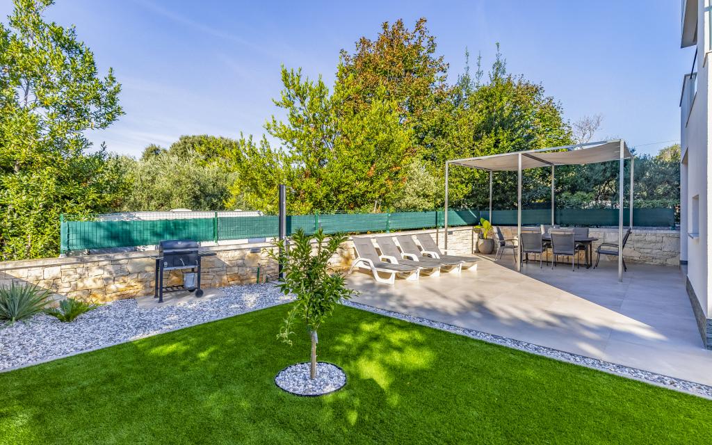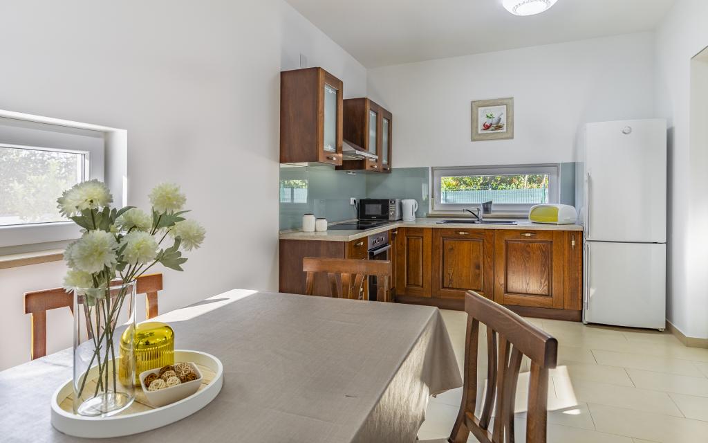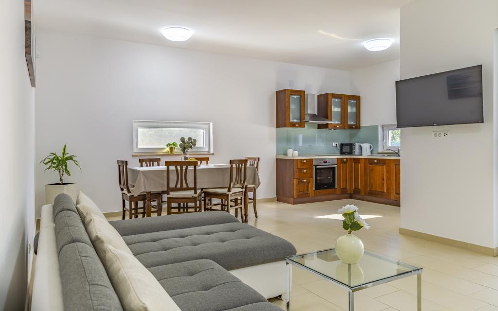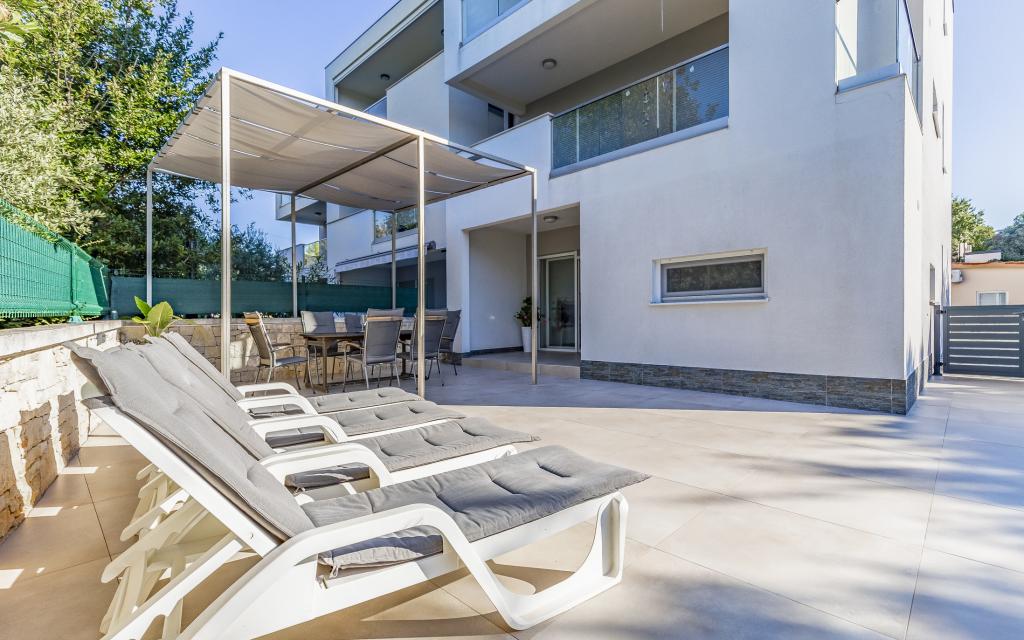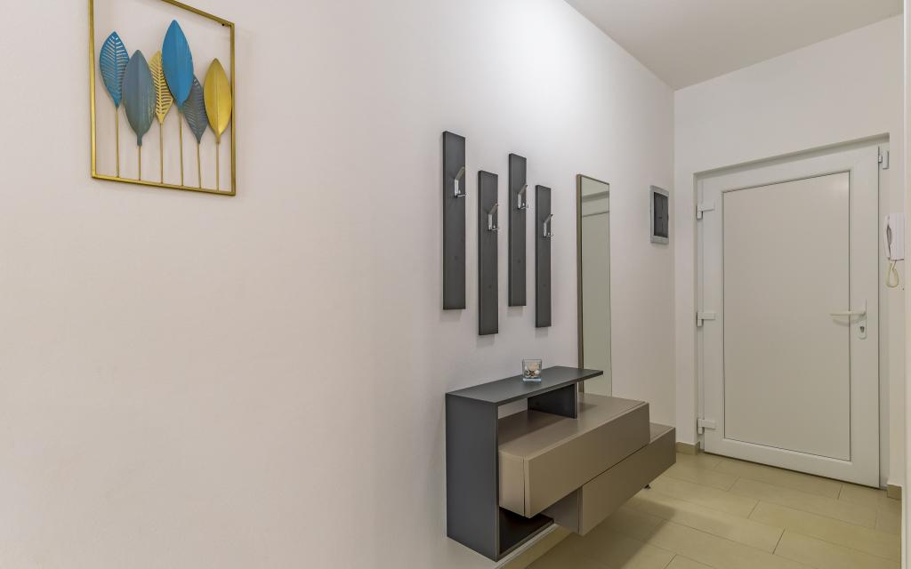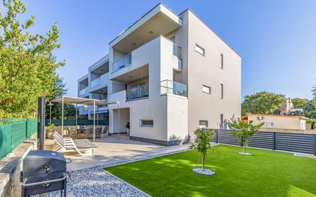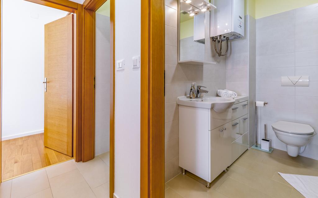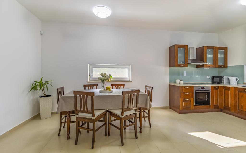 Apartamento (80 m²) completamente amueblado y con acabados de alta calidad, en una excelente ubicación en una zona tranquila de Banjol, a solo 5 minutos (300 m) a pie de las playas más bonitas de la zona. El apartamento se encuentra en la planta baja de un edificio residencial de solo tres apartamentos. Cuenta con un jardín privado (100 m²) con terraza, mesa, tumbonas, ducha exterior y barbacoa, ideal para disfrutar de una agradable charla con total privacidad, ideal para familias con niños. Hay un aparcamiento privado junto al edificio con acceso directo al jardín y a la terraza. El jardín fue completamente renovado en 2024. Todo el edificio está protegido por una valla de seguridad (acceso con tarjeta). El apartamento cuenta con dos dormitorios con camas dobles, dos baños con inodoro y ducha, un amplio salón con sofá cama, comedor y cocina. El apartamento dispone de aire acondicionado y calefacción (suelo radiante) en invierno, además de chimenea interior, por lo que también es ideal para alojarse en los meses más fríos de otoño e invierno. En las inmediaciones del apartamento hay numerosos bares y restaurantes, así como tiendas decoradas.