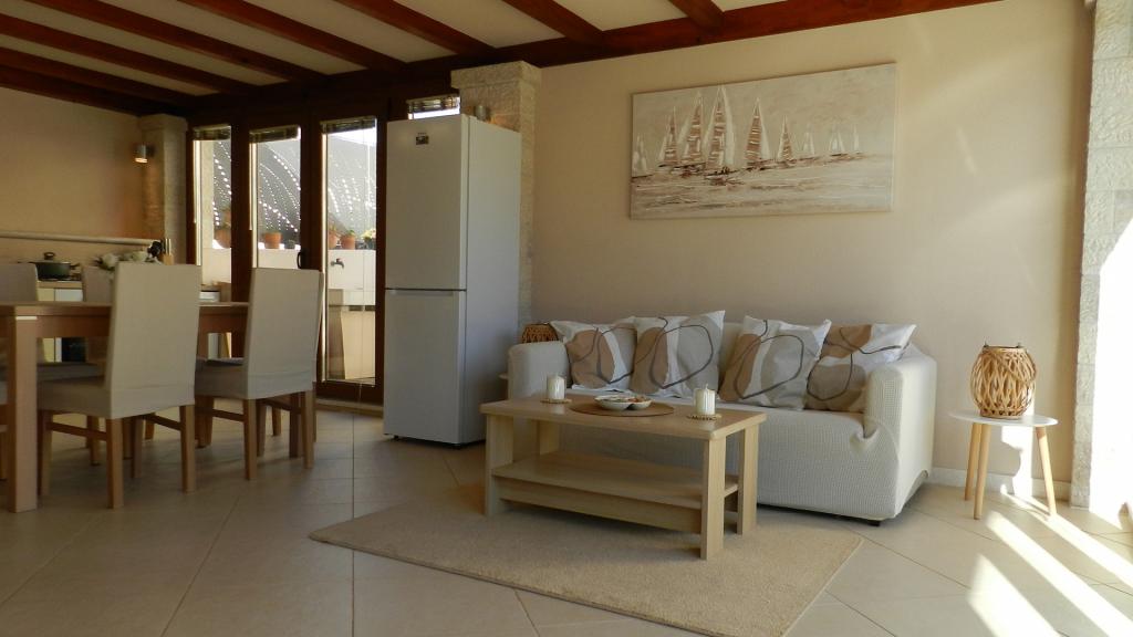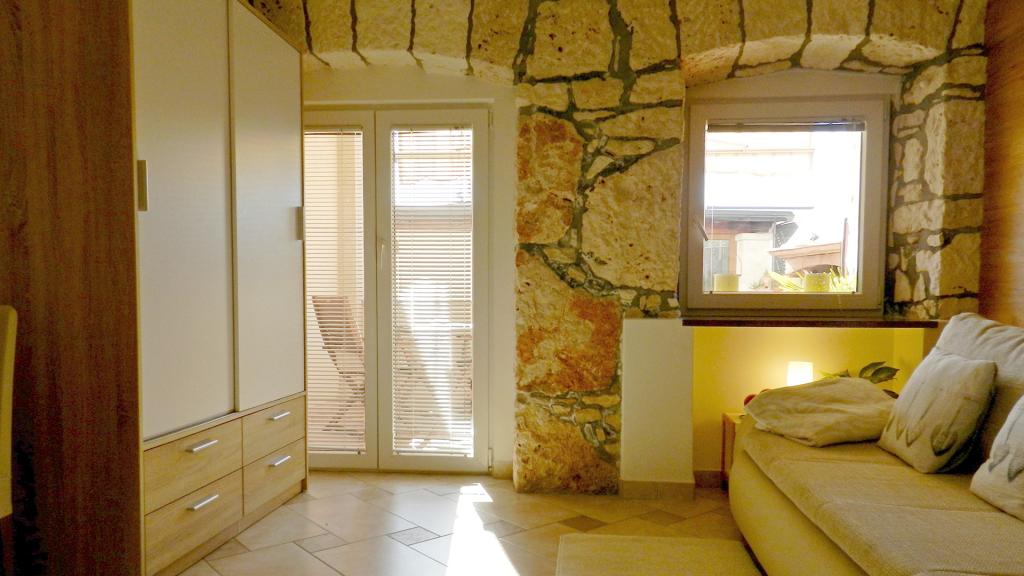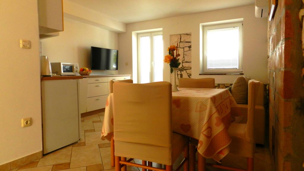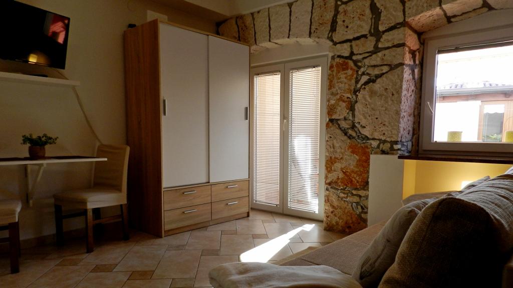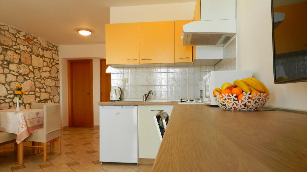 Alojamiento privado en cinco apartamentos junto al mar, cerca de Pula, en el sur de Istria. Los apartamentos Jakara (***) se encuentran en Vinkuran, un pequeño pueblo a 2 km al sur de Pula, perteneciente a la Riviera de Medulin. El lugar irradia tranquilidad en pleno verano. La antigua casa de piedra con apartamentos fue completamente renovada en 2003. La primera casa tiene tres apartamentos (para 2, 4 y 4 personas), cada uno en una planta. En el jardín hay una casa más grande en planta baja para 4 personas. Cada apartamento tiene una terraza de 9 m². El quinto apartamento es una pequeña casa independiente en el mismo patio para 4 personas. Hemos proporcionado una plaza de aparcamiento para cada apartamento frente a la casa. Hay 6 plazas en total. Cada apartamento tiene una cocina americana totalmente equipada con fogones, horno eléctrico clásico, microondas, frigorífico, congelador, cafetera y vajilla. El baño tiene ducha, inodoro y lavadora. El salón con aire acondicionado tiene TV LED vía satélite. Para niños de hasta 4 años, disponemos de una cuna adicional con valla.