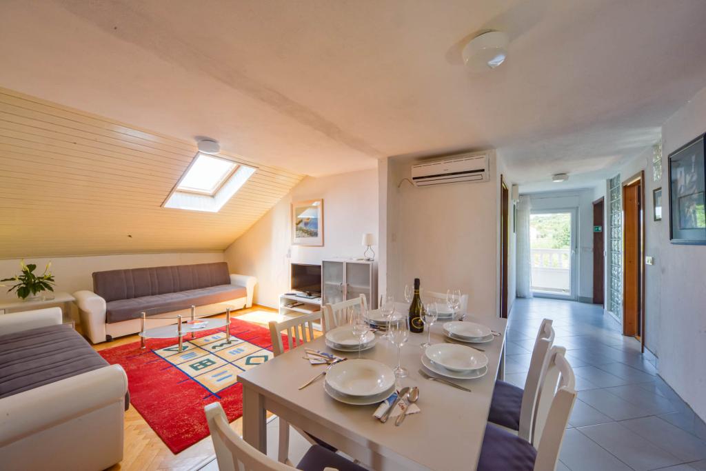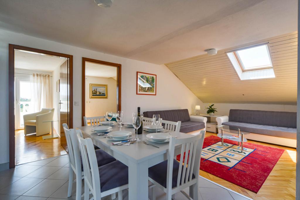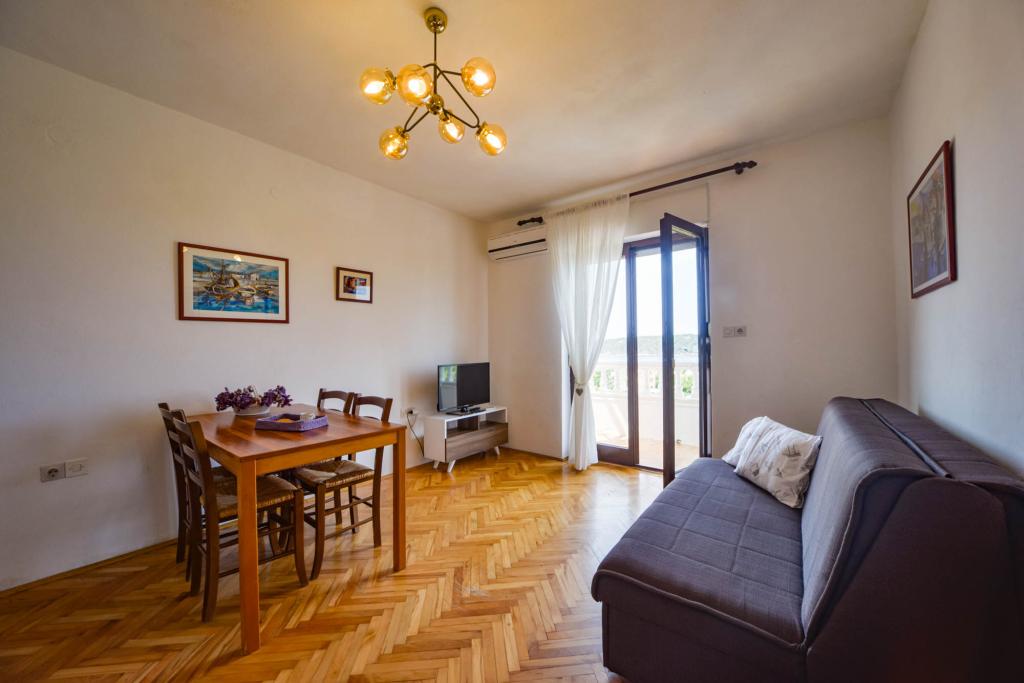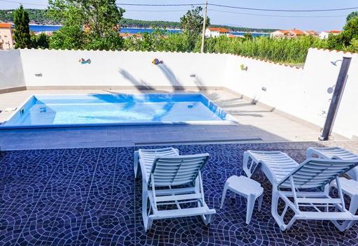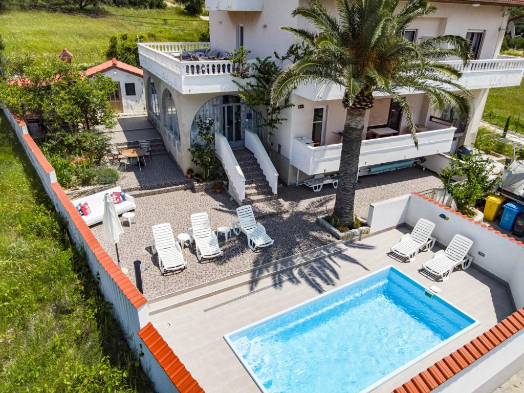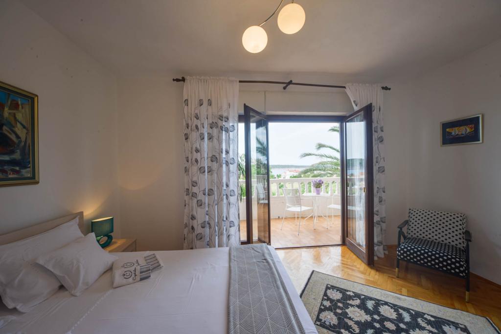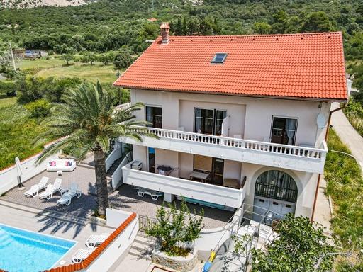 Apartamentos espaciosos y totalmente equipados con vistas al canal de Barbat y a San Damiano (restos de una fortaleza bizantina del siglo VI), con suficiente espacio exterior para que diferentes grupos disfruten de su privacidad, ya sea en la amplia terraza, la piscina o el cenador a la sombra junto al asador. La casa también es ideal para familias completas (12 personas). Se admiten niños y mascotas. Se encuentra a menos de 5 minutos a pie del paseo marítimo, con playas, restaurantes y cafeterías (300 m).