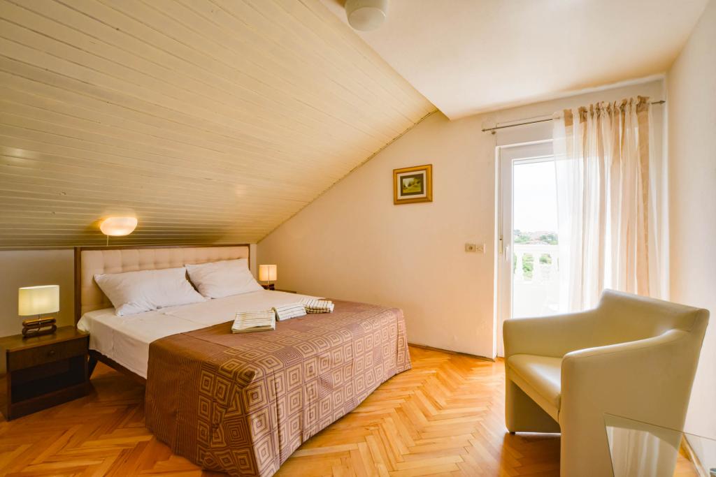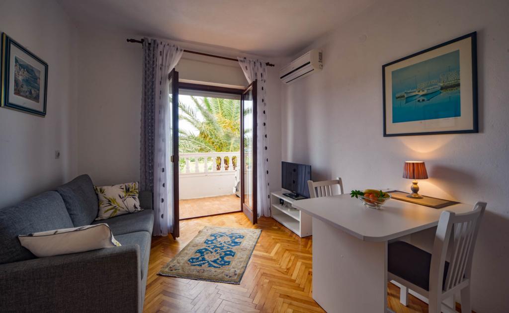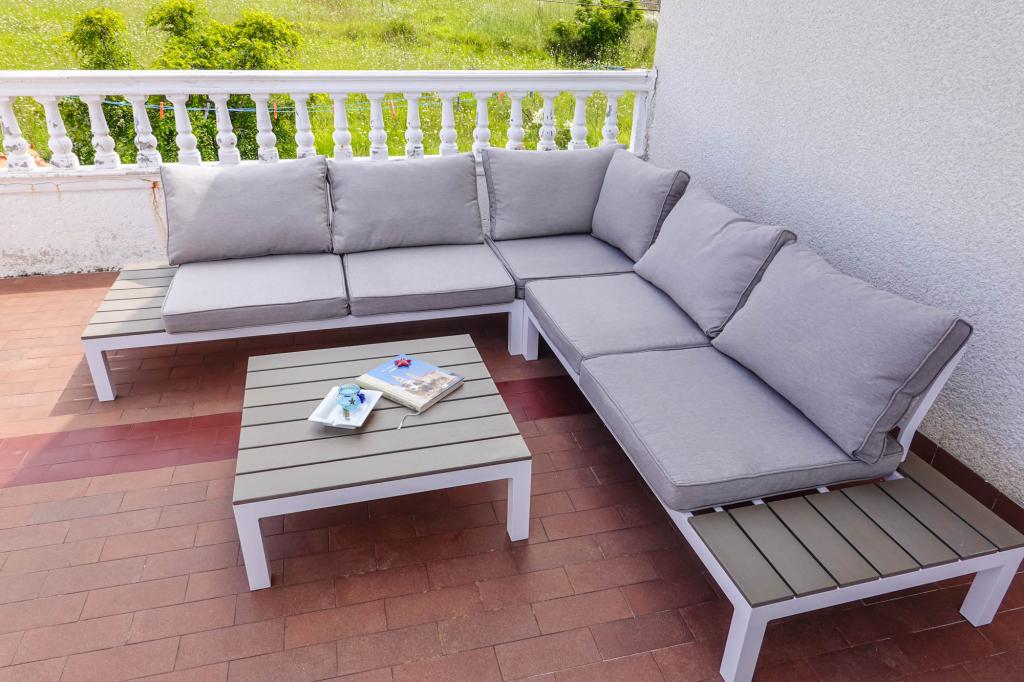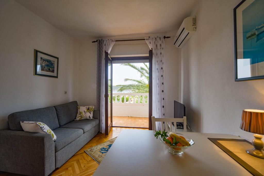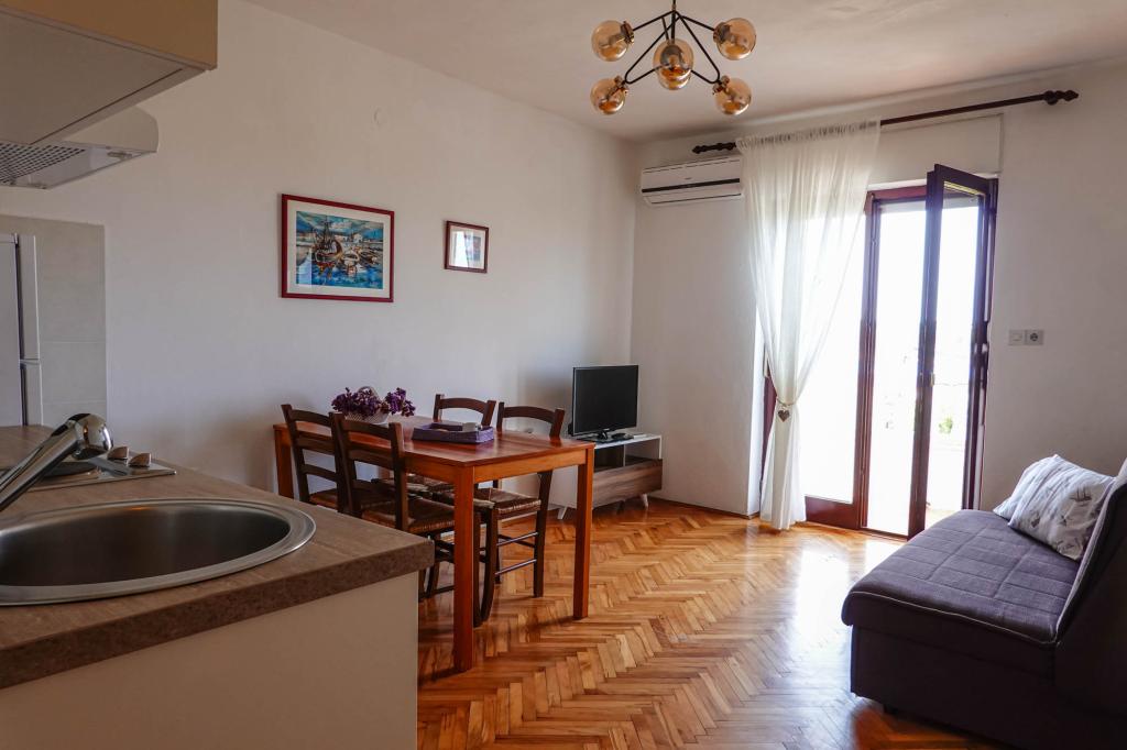 Apartamentos espaciosos y totalmente equipados con vistas al canal de Barbat y a San Damiano (restos de una fortaleza bizantina del siglo VI), con suficiente espacio exterior para que diferentes grupos disfruten de su privacidad, ya sea en la amplia terraza, la piscina o el cenador a la sombra junto al asador. La casa también es ideal para familias completas (12 personas). Se admiten niños y mascotas. Se encuentra a menos de 5 minutos a pie del paseo marítimo, con playas, restaurantes y cafeterías (300 m).