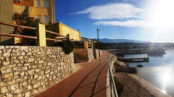 Los apartamentos recientemente reformado y moderno, situado junto al mar en una zona tranquila de Rab. Los apartamentos son especialmente adecuadas para familias con niños debido a la proximidad de la hermosa playa de arena. Con la instalación se encuentra el paseo marítimo que te lleva todo el camino hasta la ciudad de Rab. Todos los apartamentos constan de un gran salón comunica con cocina, dos dormitorios, cuarto de baño con ducha y WC y un pequeño aseo adicional, una terraza de 9m2. Los apartamentos incluyen una cafetera, mientras que los apartamentos con 4 que contiene un lavavajillas y segura. Estacionamiento con seguridad en el patio y la posibilidad de utilizar una barbacoa al aire libre compartida en el jardín al aire libre con vistas al mar.