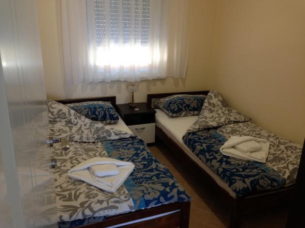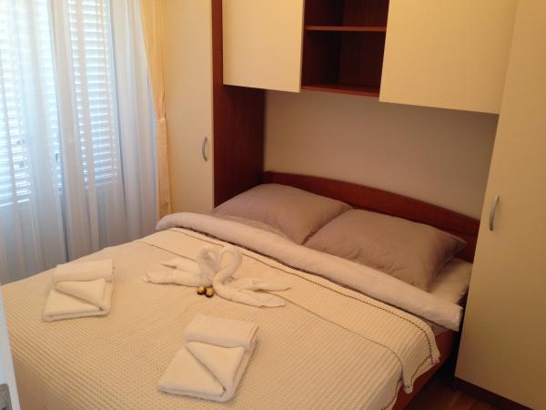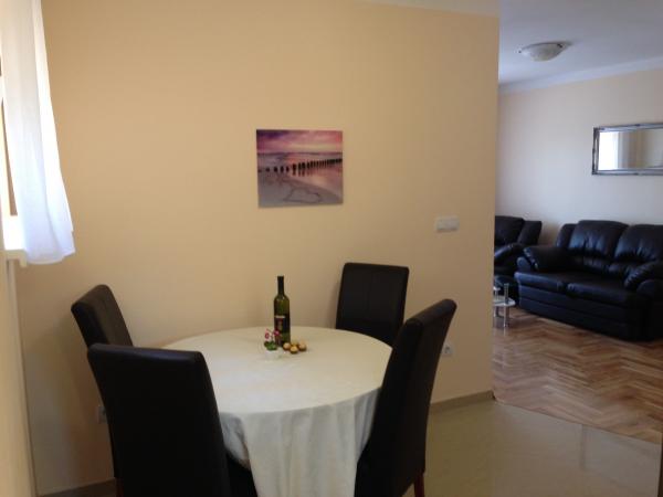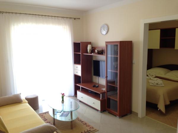 Tasa turistica está incluida en el precio.Los apartamentos constan de una entrada, dos dormitorios, sala de estar, cocina, comedor, baño y balcón. + Parking del vehículo. Los apartamentos están situados en la parte central de la ciudad, lejos de la tienda de 100 metros de la playa, restaurantes, paseos de aproximadamente 400 metros. La distancia al centro de la ciudad de Rab (la parte histórica de la ciudad), es de unos 4 km, donde hay líneas regulares de autobús, taxi y taxi acuático, y puede caminar y nuevo paseo marítimo a lo largo de la costa. El precio incluye: Tourist tax, internet - (a través de Wi-Fi), teléfono - (para emergencias), cocina - (totalmente equipada), Aire (frío / calor) TV-Radio (servicio de TV Max, con más de 200 canales de pago), caja fuerte, ropa de cama, toallas, jabón, servicios públicos, limpieza, etc