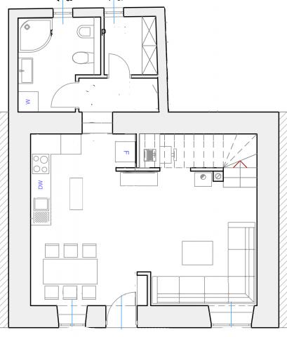 Esta es una casa recientemente renovada de 200 años. Es adecuado para familias con niños. El espacio es de unos 80 m2 en dos plantas. En la planta baja hay una cocina, comedor, sala de estar, baño con ducha y despensa. Dos dormitorios y otro baño con bañera están arriba. Un dormitorio tiene una cama doble de 160x200 cm. El segundo dormitorio (dormitorio de los niños) tiene una cama elevada que mide 140x200 cm (cama IKEA Stora), y debajo de la cama hay un sofá del mismo tamaño cuando se saca. La habitación de los niños está equipada con juguetes, libros para colorear, crayones. La tienda más cercana está a aproximadamente 1 km, y lo mejor es ir de compras en coche. La playa más cercana está a unos 500 m.