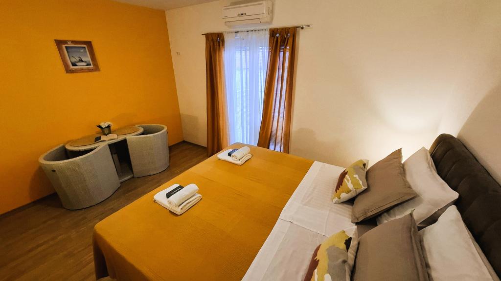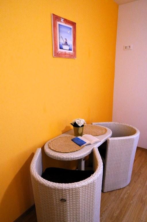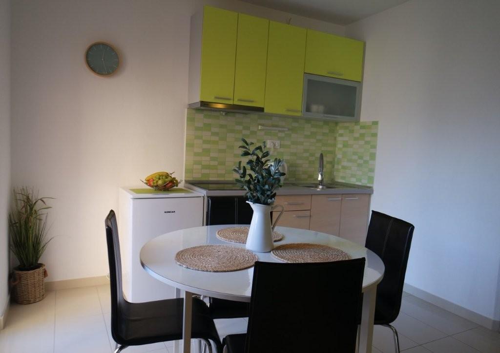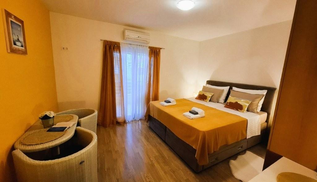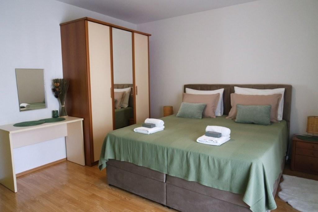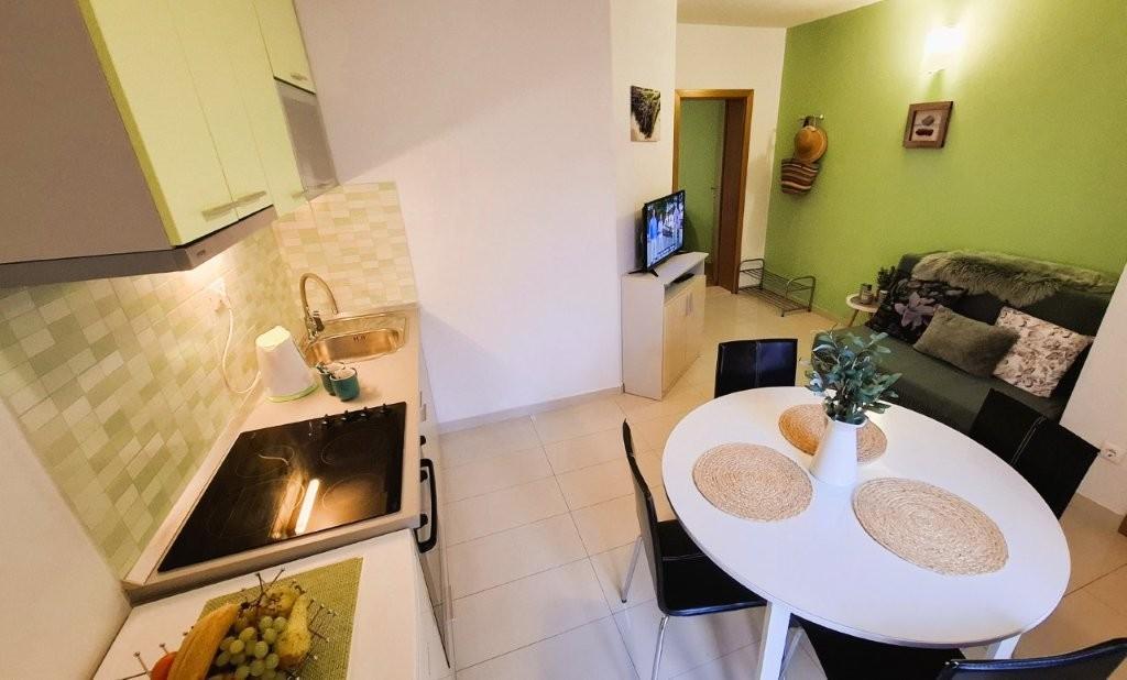 Los modernos apartamentos Harmonia son la elección perfecta para unas vacaciones familiares cómodas o para parejas que buscan un alojamiento confortable cerca de la playa. A unos 200 metros de la playa de Nikola, en una atractiva zona de Baška Voda y no muy lejos del centro, con una hermosa vista lateral del mar y la montaña Biokovo. Ofrecemos alojamiento en apartamentos verdes y naranjas, destinados a 2 adultos con 2 niños pequeños y en un apartamento turquesa para 2 adultos con ev. 1 niño Cada apartamento es de 40m2, tiene un amplio dormitorio, sala de estar que incluye una cocina totalmente equipada, mesa y sillas y un sofá cama, baño y terraza. Los apartamentos verde y naranja se encuentran en el primer piso de la casa familiar y tienen amplios balcones con vistas laterales al mar, mientras que el apartamento turquesa se encuentra en el sótano de la casa sin vistas al mar, con una gran terraza y sillones. Cada apartamento está totalmente equipado, irradia limpieza y colores brillantes que seguramente lo harán sentir cómodo y pasar unas agradables vacaciones.