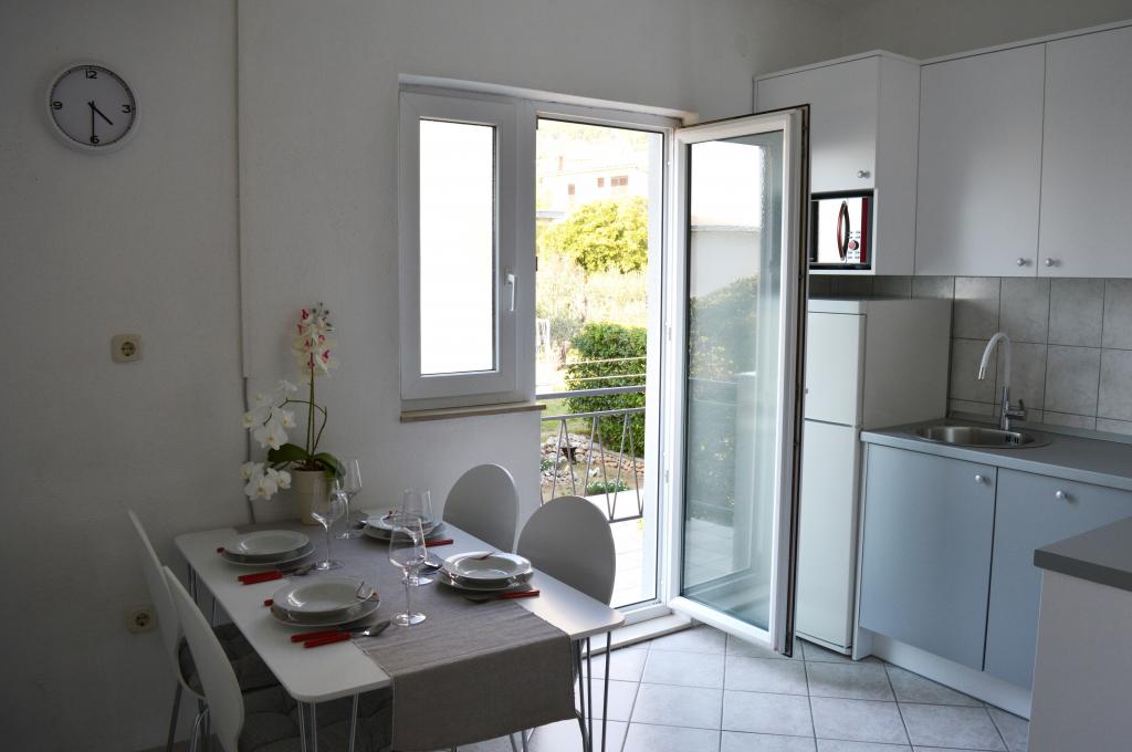 Estuvimos en el alojamiento 10 días. ¡Puedo decir que la anfitriona es una mujer maravillosa! ¡Amable y simpática! Nos recibió con brandy casero. Ella le ofrecía a su hija una galleta, una barra de chocolate y una pieza de fruta casi todos los días. ¡El alojamiento está impecable y limpio! La cocina quizás esté mejor equipada que la mía. El apartamento tiene secador de pelo, tabla de planchar, plancha y fregadero. Nuestro coche estaba aparcado en el patio de la villa, a la sombra. El mar está a solo 200 m, al igual que la tienda. Konzum o Tommy están igual de lejos si vas de compras cerca del mar. ¡Todas las recomendaciones! Espero que algún día volvamos a Baške vode, y si lo hacemos, sin duda volveremos a Aunt Neva.