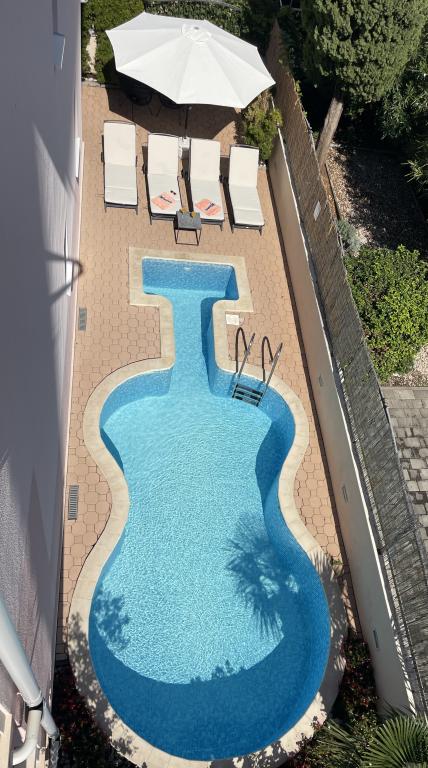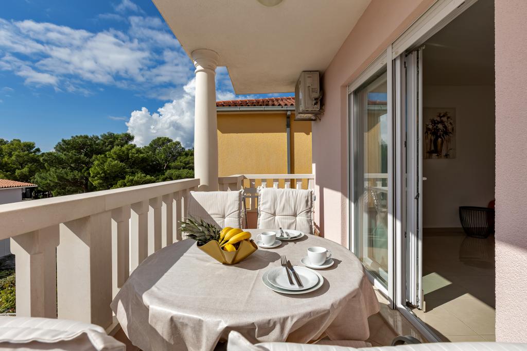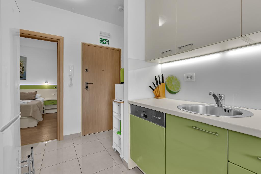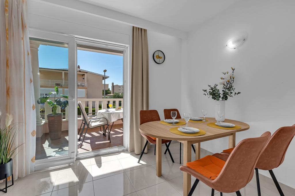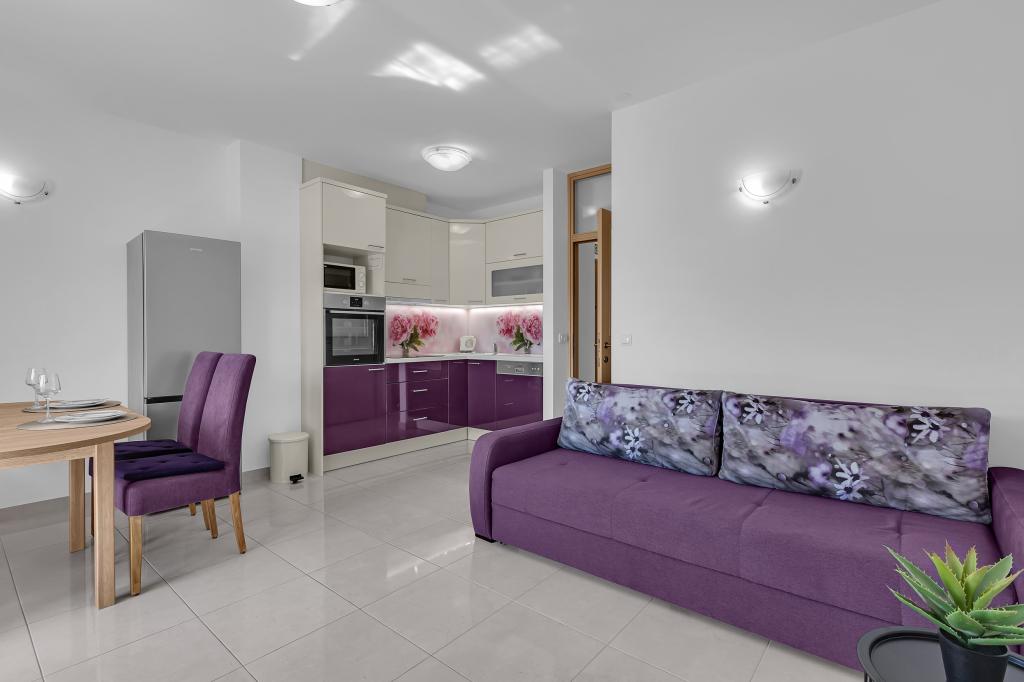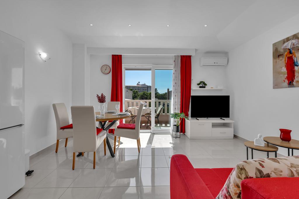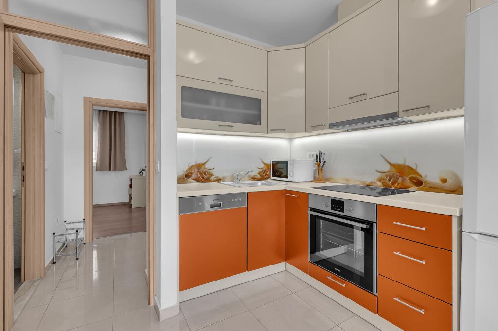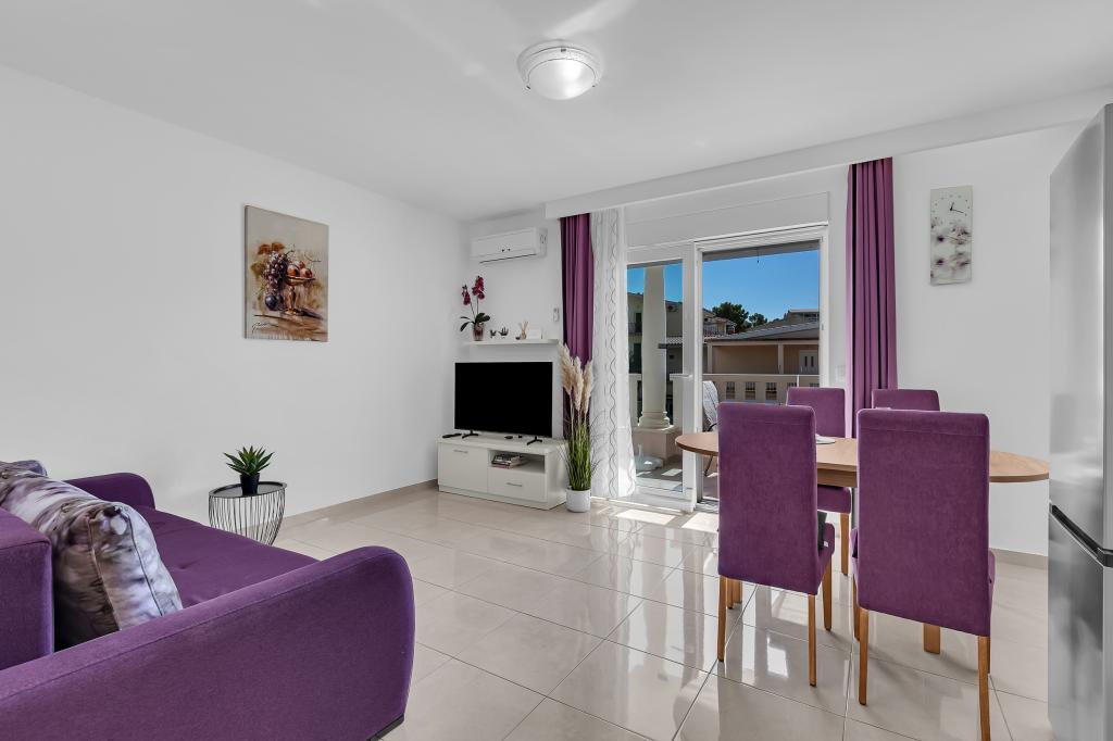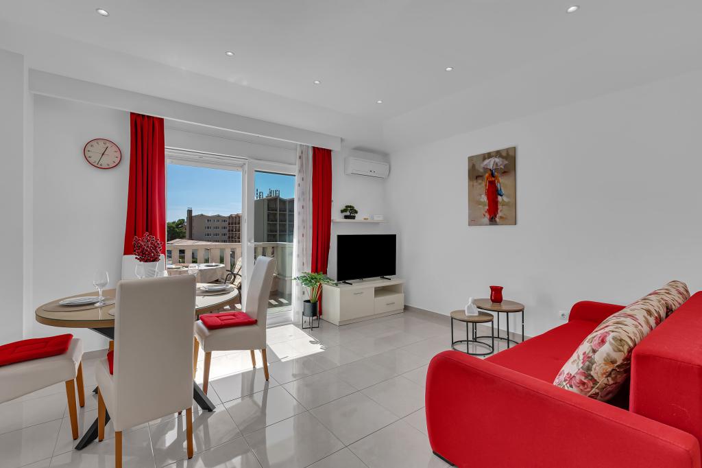 ¡APARTAMENTOS NUEVOS! Todos nuestros apartamentos están modernamente equipados. En total, tenemos seis (6) apartamentos para ofrecer, cinco (5) de los cuales son de un dormitorio y un dúplex de dos dormitorios. En el patio hay una pequeña piscina para los huéspedes, a) Los apartamentos de una habitación (2 adultos y 2 niños) tienen: una habitación con una cama doble, un baño grande con una ducha grande, una cocina moderna totalmente equipada con un comedor y una sala de estar con aire acondicionado y un cómodo sofá cama para dos niños adultos, así como Internet Wi-Fi. Cada uno de estos apartamentos dispone de un amplio balcón de 9 m2 desde el salón. b) Apartamento 4 de dos habitaciones y dos niveles (4 adultos y 2 niños) tiene en el primer piso una moderna habitación con una cama doble y un baño con ducha y WC, una cocina completa con comedor y una sala de estar que tiene un cómodo sofá cama para dos niños adultos. Se accede al segundo piso a través de una escalera de caracol, con una gran habitación, baño y aseo independiente. . Ambas plantas disponen de aire acondicionado.