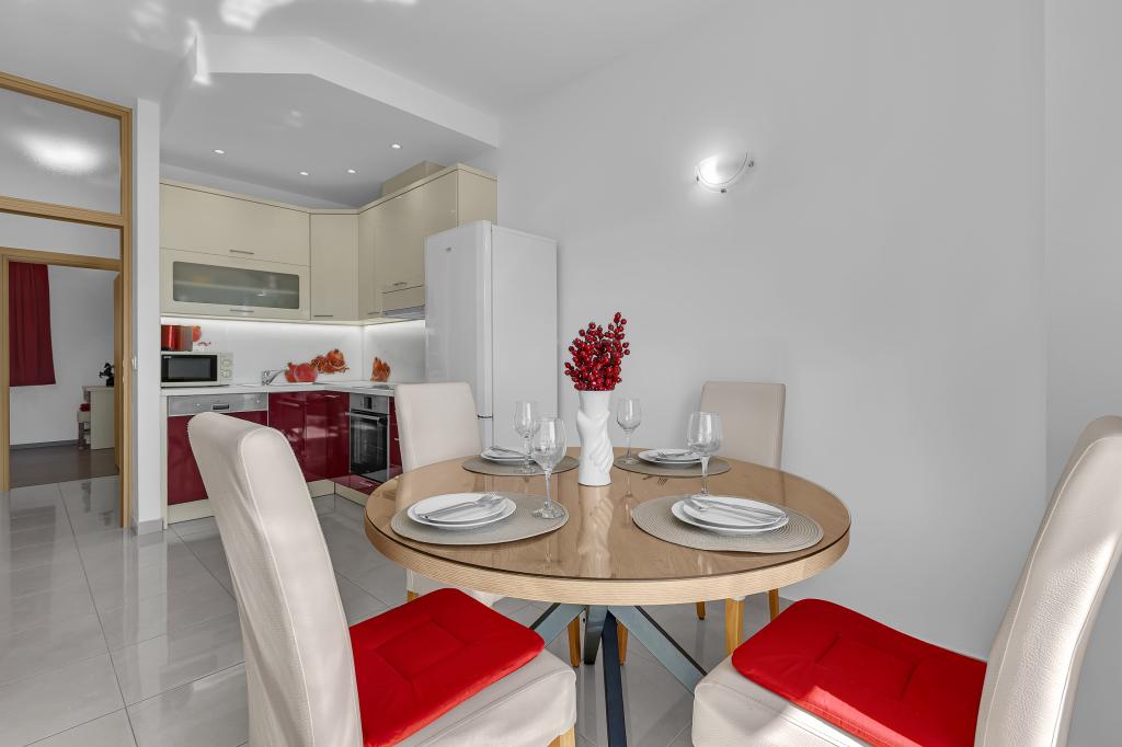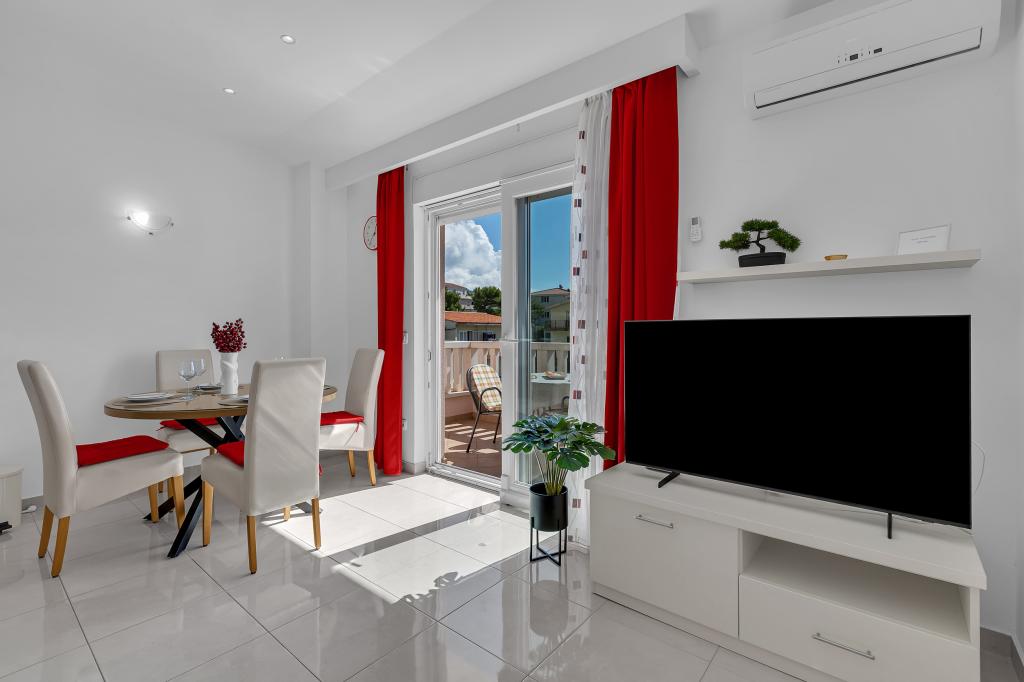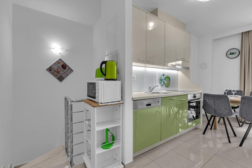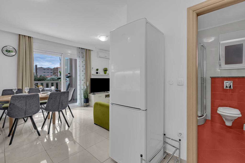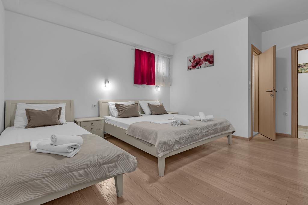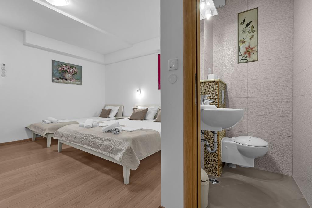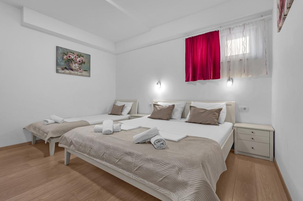 Tasa turistica está incluida en el precio.A petición de los huéspedes, podemos ofrecer transporte desde el aeropuerto de Split a Baška Voda y viceversa. El día de la salida, si los huéspedes tienen un vuelo tardío, podemos guardar su equipaje en una sala especial después de las 10:00 am y los huéspedes pueden quedarse en la playa... Fuera de la casa hay una pequeña piscina, así como una parrilla con mesa y bancos.