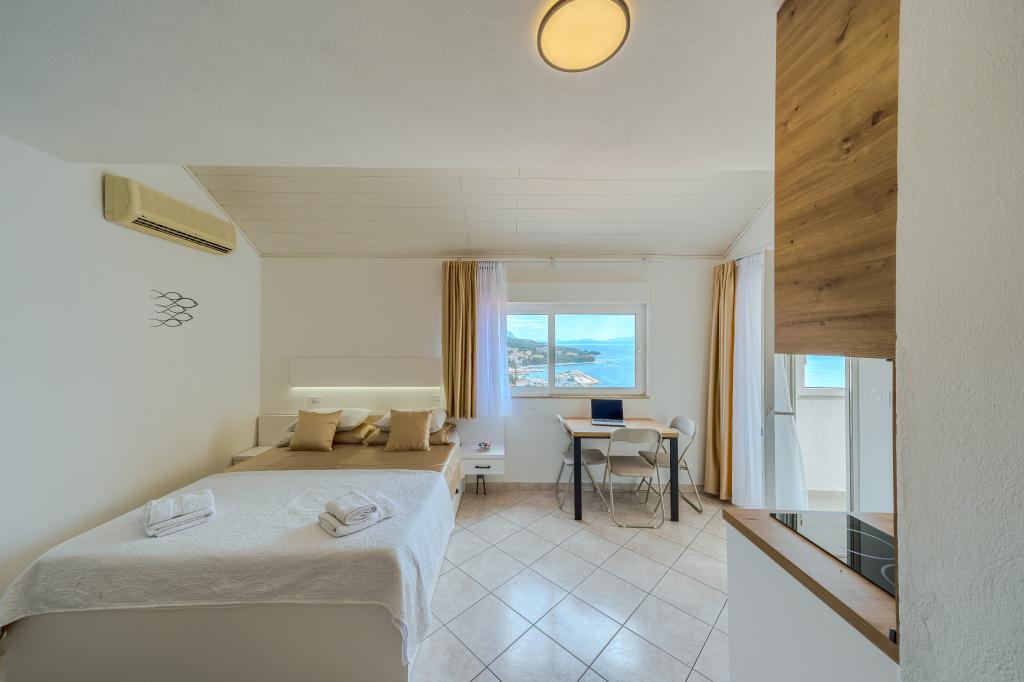 Todo estuvo bien, el apartamento está limpio y es cómodo, con hermosas vistas, los anfitriones son muy serviciales. La playa está a 5 minutos a pie, pero con un camino empinado y escaleras, por lo que puede no ser demasiado cómodo para niños pequeños o personas mayores. Zona más tranquila que el centro, todavía cerca de restaurantes, etc. Nos encanta Baska Voda con los senderos para caminar a Brela o Makarska.