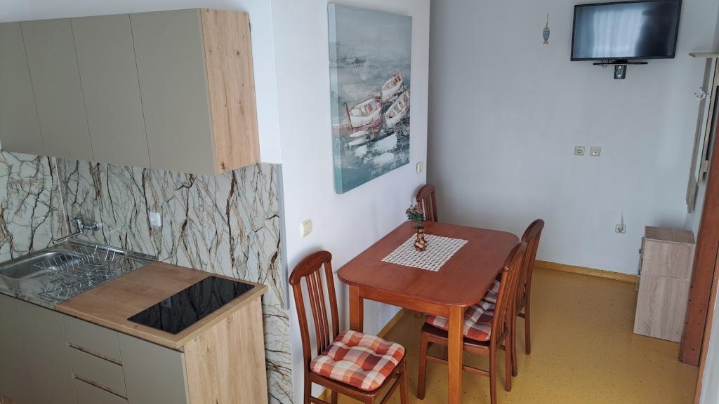 Edificio de apartamentos ŠTIZ-BETINA - ¡Sus vacaciones ideales junto al mar! Situado directamente junto a la costa en la ciudad de Betina en la isla de Murter, el edificio de apartamentos ŠTIZ-BETINA ofrece el entorno perfecto para unas vacaciones relajantes. Nuestra playa de piedra ajardinada está equipada con tumbonas y grandes sombrillas que podrás utilizar de forma gratuita. ¿Vienes en barco? Ofrecemos la posibilidad de botadura y amarre para embarcaciones de hasta 7 metros, con estacionamiento seguro para un remolque dentro del patio vallado. Ubicación: La casa está situada a 1,5 km del centro de Betina, donde encontrará el casco antiguo, tiendas, cafeterías, restaurantes y la playa principal de la ciudad. A la isla de Murter se puede llegar fácilmente en coche porque está conectada al continente por un puente levadizo que se levanta dos veces al día. Ofrecemos: seis apartamentos (2+2) y cuatro estudios (2+1). Cada unidad de alojamiento incluye: cocina totalmente equipada, aire acondicionado, conexión Wi-Fi gratuita, televisión de alta definición vía satélite con pantalla plana, aseo con ducha, ropa de cama y toallas. Todos los apartamentos y estudios tienen una hermosa vista al mar y al jardín.