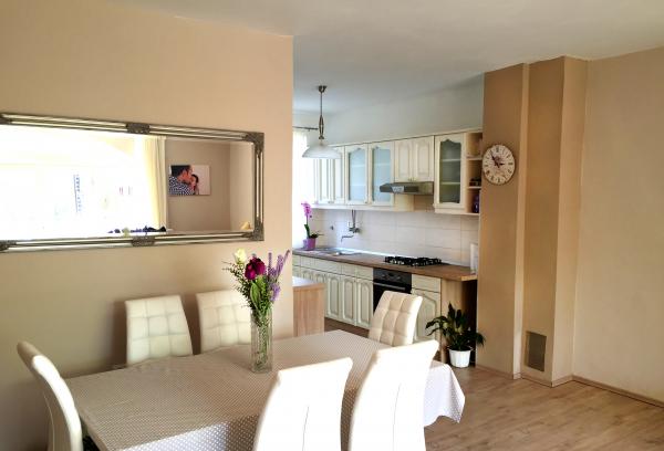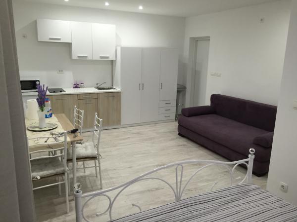 Totalmente amueblado apartamento en la planta baja, al lado del mar. Diseñado para un máximo de 6 personas. Consta de 1 dormitorio con una cama doble y un sofá cama, baño grande y sala de estar. En el amplio salón hay 2 camas para un máximo de 4 personas. El apartamento está situado a 10 m del mar y tiene su propia terraza y jardín con barbacoa y aparcamiento cubierto. El apartamento tiene aire acondicionado y confortables, con TV, WIFI-TV y lavavajillas. Una característica especial de este apartamento es su ubicación en una zona especialmente tranquila, rodeado sólo por mar y la naturaleza, que es perfecto tanto para jóvenes, tanto para las familias con niños y personas adultas que quieran disfrutar de un merecido descanso.