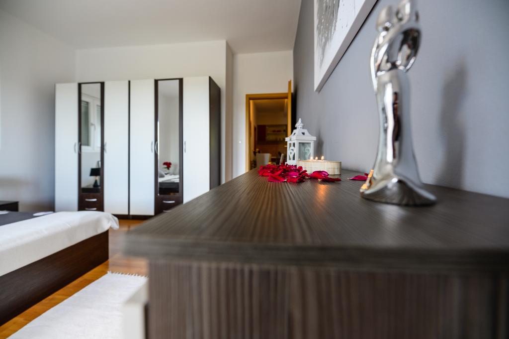 Apartamentos Anita se encuentra en una casa unifamiliar en una zona tranquila de la fecha, lejos de las carreteras principales, con un gran patio y jardín, que es ideal para familias con niños. Los apartamentos están situados en el edificio, cada uno con 2 camas dobles + dos camas supletorias, y sobre todo las terrazas separadas, baño con ducha y lavado de apartamentos centranom 2, y el aseo personal en uno. Para todos los huéspedes pueden disfrutar de espacios de estacionamiento en el patio, y el uso del jardín y parrilla.