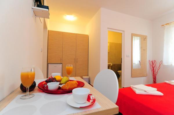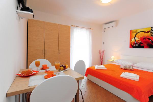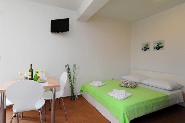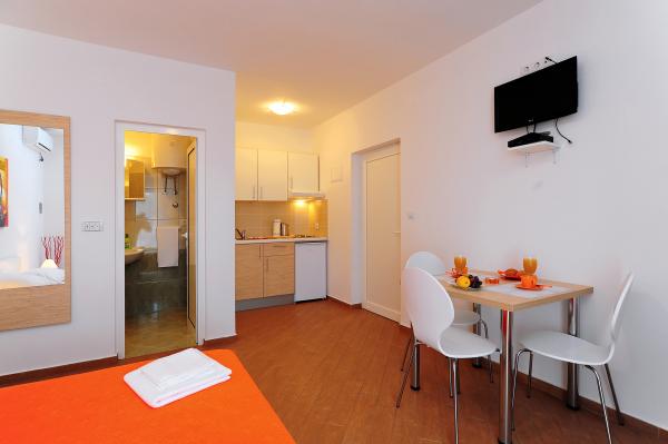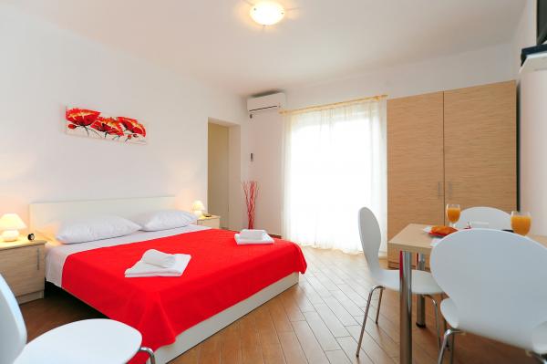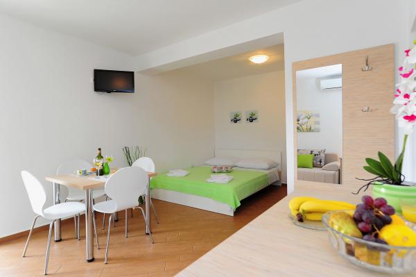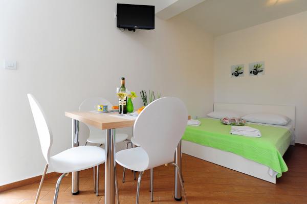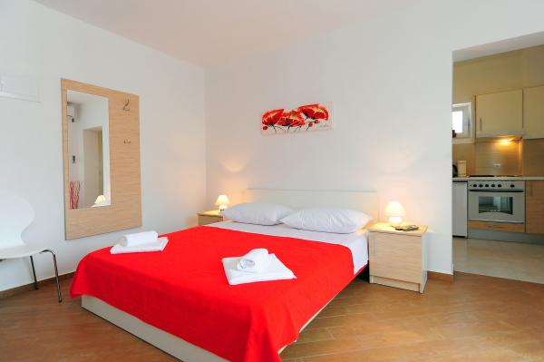 Totalmente equipados y modernos apartamentos en una zona tranquila de la fecha, 2 minutos a pie del centro de la ciudad ya 5 minutos a pie de la playa. La propiedad tiene una piscina de nueva construcción y aparcamiento privado es gratuito.