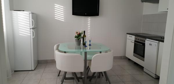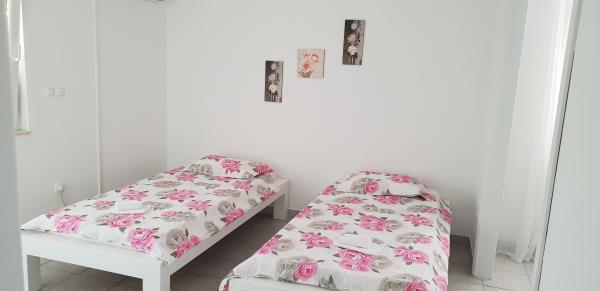 En la orilla del lago Prokljansko (bahía), alquilamos tres apartamentos completamente amueblados con una piscina para un total de 12 personas. La instalación está ubicada cerca de la playa, área de juegos para cafés, restaurantes y mini mercado. También puede disfrutar del Parque Nacional Krka y Kornati. Los APARTAMENTOS 1 y 2 son para 8 personas y están ubicados en el piso de una casa familiar, totalmente equipados, cada uno consta de un dormitorio con cama doble y un amplio salón con dos camas adicionales para dos personas, cocina, baño y terraza. El APARTAMENTO 3 es para 4 personas y está ubicado en el segundo piso de una casa familiar, está totalmente equipado y consta de una habitación con una cama doble y las otras dos camas adicionales para dos personas, cocina, baño y amplia terraza. Los apartamentos tienen su propio aparcamiento vallado. Todos los alojamientos disponen de aire acondicionado y están equipados con lavadora y lavavajillas y dispone de WiFi.