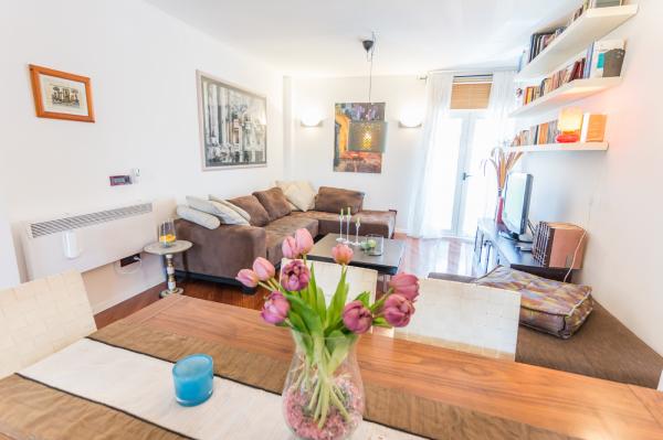 Este lujoso apartamento está situado en un pequeño edificio en el paseo marítimo, en el centro de Biograd, cerca del Hotel Kornati y Illyria, con vistas al mar. El apartamento tiene dos habitaciones con camas de matrimonio y una cama individual en el salón, por lo que puede alojar hasta 5 personas. Ropa de cama, paños de cocina y toallas le esperan en el apartamento, y toallas de playa, por favor traiga con usted. El apartamento tiene aire acondicionado, equipadas con TV vía satélite y conexión Wi-Fi (WLAN) de Internet. La cocina está equipada con vajilla y utensilios para preparar y servir comidas y lavar los platos. El cuarto de baño tiene un baño de asiento, inodoro y lavabo y lavadora. A su disposición un aparcamiento en una ferme semi parc, sin costo adicional.