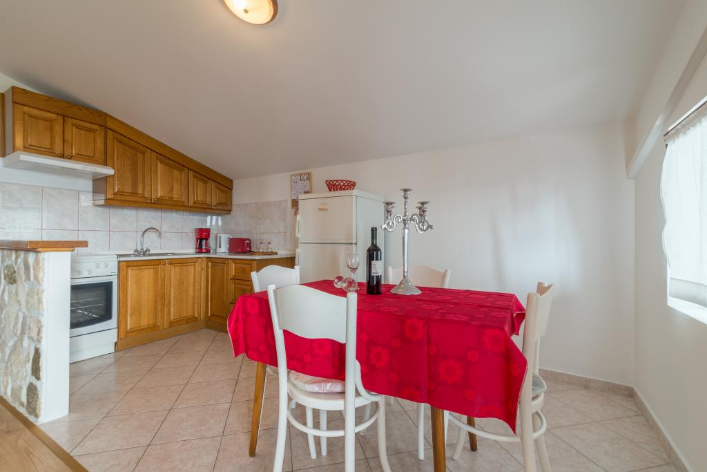 Casa familiar con dos apartamentos y un edificio auxiliar con un apartamento. Smješšten Apartamento A2 está en la primera planta y consta de cocina, dormitorio, baño y terraza con vistas al mar. Apartamento A4 +1 se encuentra en la planta superior, con aire acondicionado, dos habitaciones con cama doble, baño, cocina y sala de estar, terraza con vistas al mar. A2 1 ubicado en el edificio auxiliar en la planta baja, aire acondicionado, cocina, dormitorio (cama doble con cama supletoria), cuarto de baño, 50 m del mar.