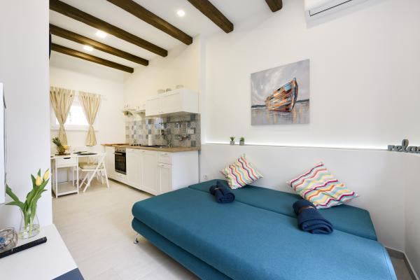 Nuestros apartamentos están ubicados en el mismo centro de Biograd n/m, lo que le permite tener todas las comodidades clave a su alcance. En pocos minutos a pie se puede llegar a: - Playa - Dražice 100 m - Riva y restaurantes 100 m - Estación de autobuses 300 m. Los apartamentos están ubicados en una casa familiar, disponibles en la planta baja y en el segundo piso, con un espacio de estacionamiento seguro en el patio. Cada unidad está cuidadosamente decorada y contiene: - Baño con ducha - Dormitorio para un descanso tranquilo - Cocina totalmente equipada - Sala de estar con una cómoda cama nido (160x200 cm). Los huéspedes tienen acceso a todas las comodidades modernas para una estancia confortable: - Aire acondicionado para la temperatura perfecta en cualquier época del año - SMART TV con programas vía satélite para relajarse - Wi-Fi ilimitado para navegar sin preocupaciones. Ya sea que venga para unas vacaciones familiares, una escapada romántica o una estancia activa junto al mar, nuestros apartamentos ofrecen todo lo que necesita para una estancia agradable y relajante en Biograd n/m. ¡Bienvenido!