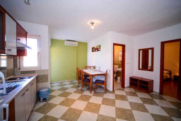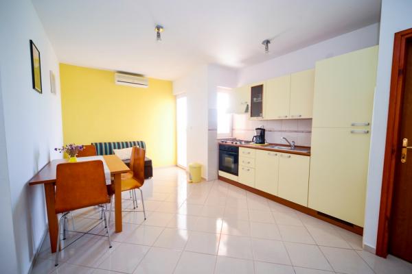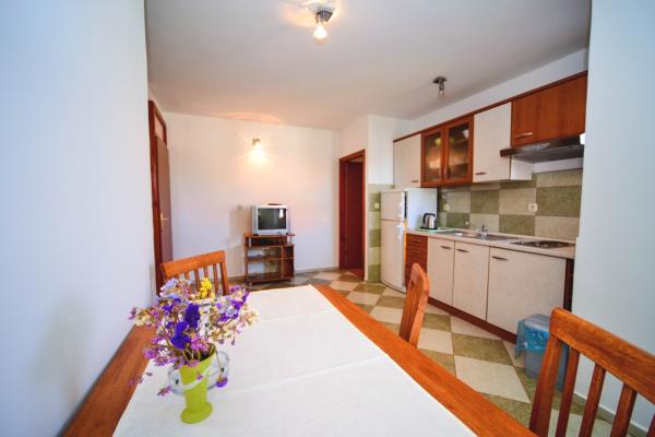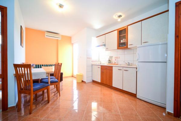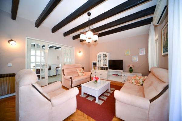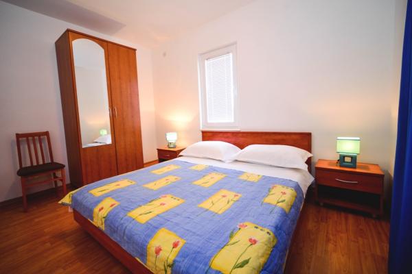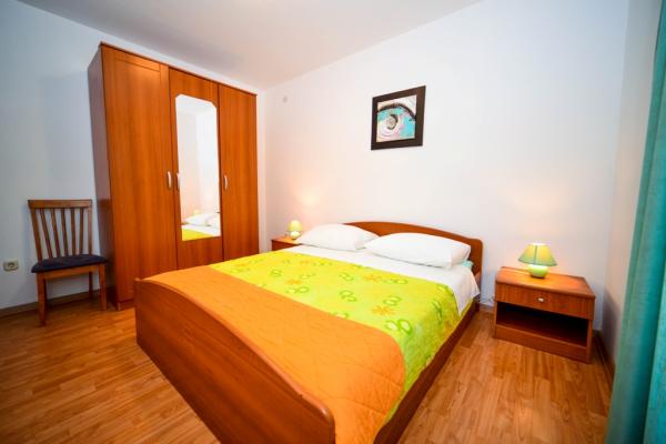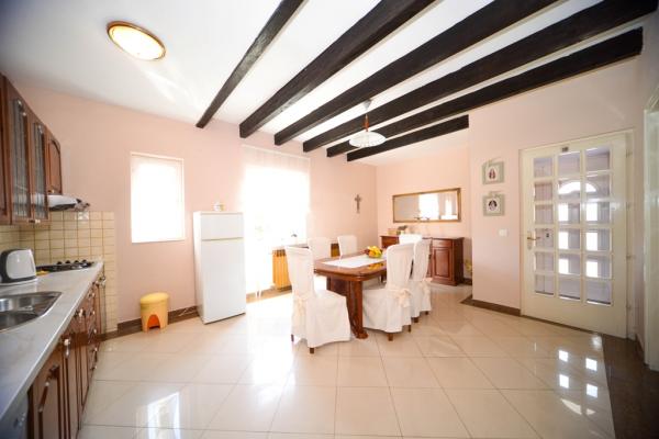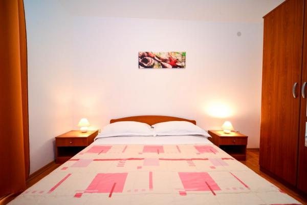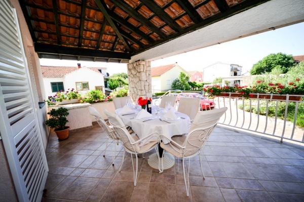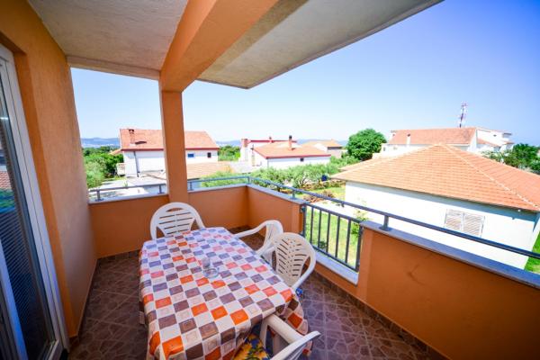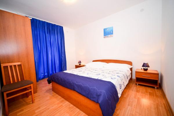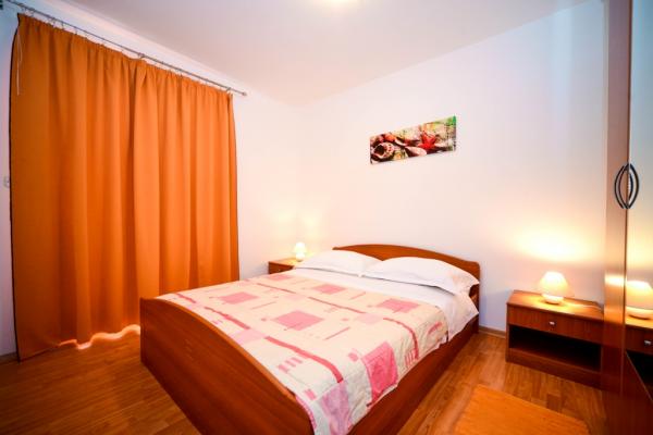 Apartamentos con encanto y recientemente renovado en Biograd en una parte tranquila de la ciudad 6.month 45 eur / noche para 4-5 personas Séptimo y 8.mjesec 60eur/noć para 4-5 personas La propiedad cuenta con un amplios apartamentos de 4 dormitorios, cada apartamento tiene 50m2 + balcón + terraza. Dos apartamentos se encuentran en el primer piso y dos en el segundo piso con vistas al mar. Cada apartamento tiene dos habitaciones con camas dobles, baño, salón comedor, cocina totalmente equipada, terraza con acceso desde el dormitorio y una gran terraza en la que sale de la habitación y la cocina y el comedor. Existe la posibilidad de camas adicionales para que el apartamento puede alojar hasta 5 personas. El aparcamiento está rodeado por una valla en frente de la casa. Cada visitante tiene un estacionamiento. En el jardín hay una barbacoa / chimenea y una terraza al aire libre con la posibilidad de uso de los huéspedes. La playa más cercana está a Bosa, playa de gravilla 10-15min a pie.