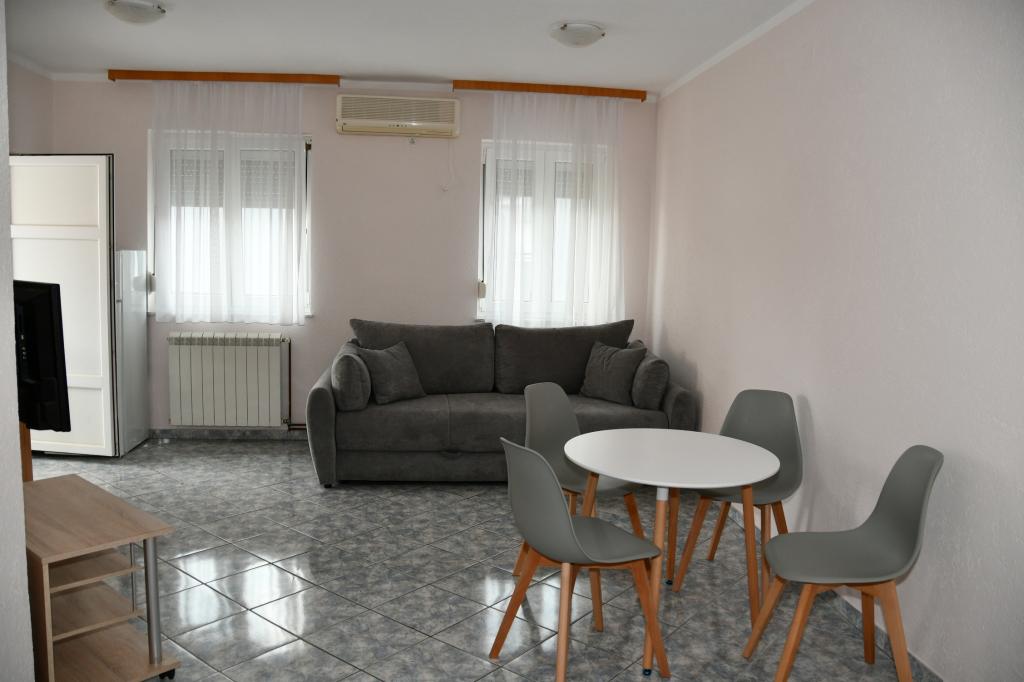Los apartamentos están ubicados en una zona tranquila de la ciudad, a 10 minutos a pie de la playa, el restaurante y la tienda más cercanos. El patio y las terrazas están decorados para socializar y cuentan con cocina exterior/barbacoa. Los apartamentos están amueblados de forma sencilla y disponen de aire acondicionado, TV y wifi. Cada apartamento consta de un dormitorio con baño privado, sala de estar, cocina totalmente equipada y balcón para relajarse. Nuestros amables anfitriones le darán la bienvenida y estarán a su disposición para cualquier consulta o solicitud. Hablan alemán y croata con fluidez. Nuestra oferta hará de sus vacaciones una experiencia inolvidable en un auténtico ambiente mediterráneo. ¡Bienvenidos!
