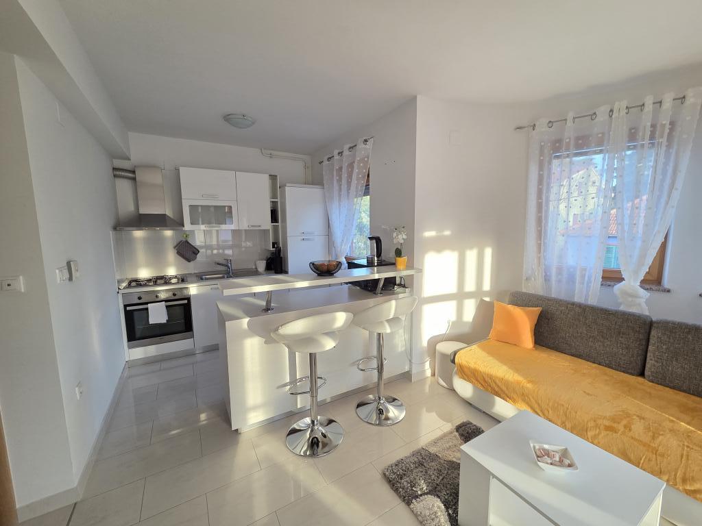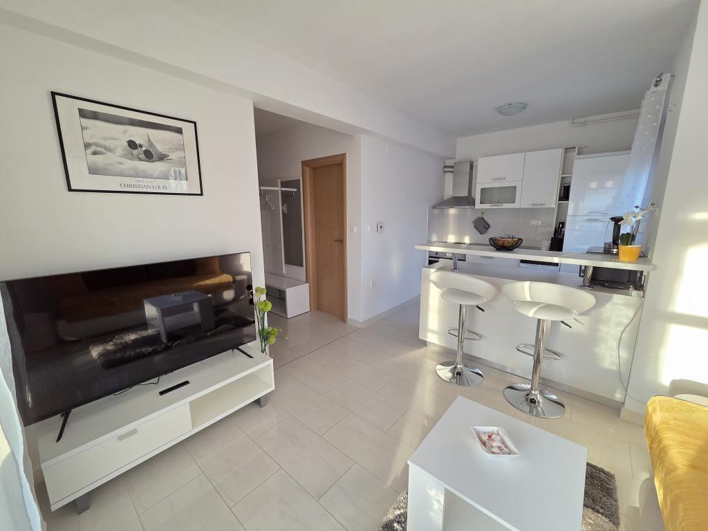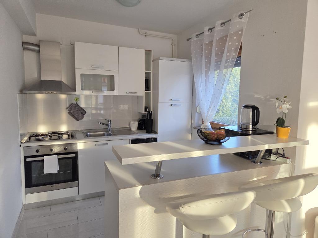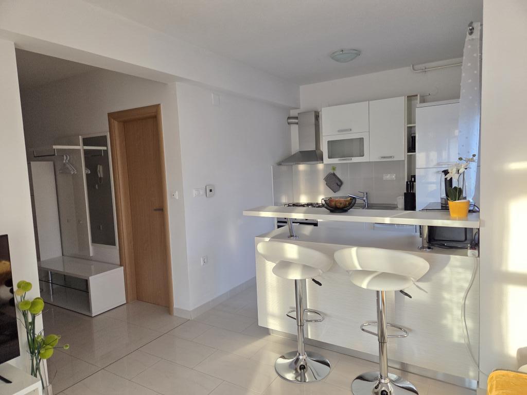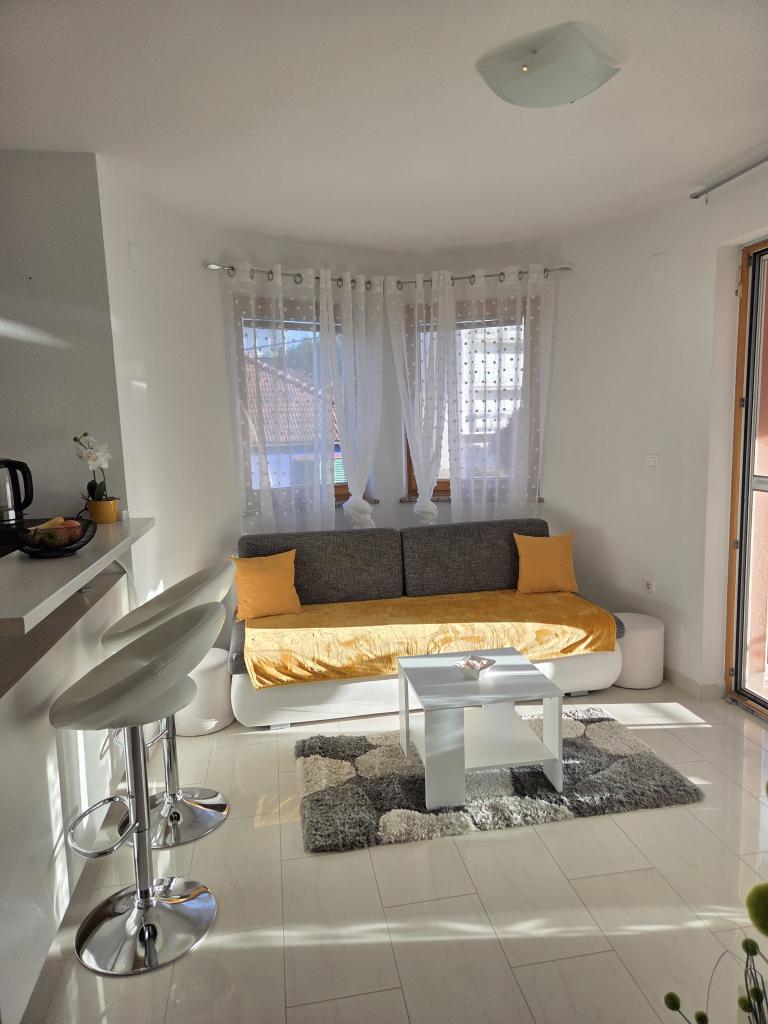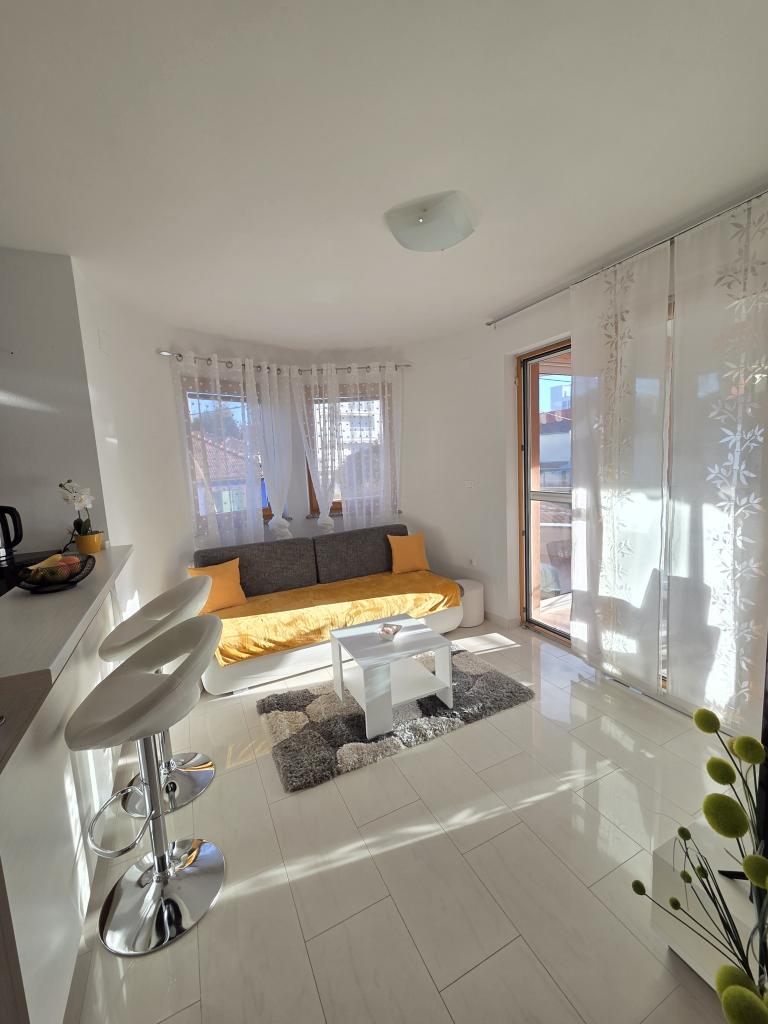 Nos alojamos en un apartamento verde para 4 personas. El apartamento es bonito, moderno, excelente ubicación, pero por el precio de 120 € esperábamos algo más. Faltan pequeñas cosas que son importantes y que hacen que los invitados regresen o no. Por el precio indicado, esperábamos al menos un juego de 6 vasos, 6 platos, cucharas y otros cubiertos. Como en otros apartamentos donde solíamos quedarnos en la cocina, debe haber detergente en polvo, un poco de azúcar, sal, posiblemente especias, un poco de aceite, vinagre y otras necesidades, lo suficiente para tener para el primer momento. En algunos otros apartamentos, los huéspedes son recibidos con un plato de fruta o una botella de vino. También hay una sombrilla en la terraza y cómodas sillas. Por tanto, la terraza no es utilizable. Hay un hermoso sofá en la sala de estar, pero es bastante incómodo al igual que la cama en la habitación de los niños. La televisión tiene solo unos pocos programas de televisión básicos. En general, un apartamento agradable, un anfitrión amable, pero no hay un servicio adicional que justifique un precio tan alto.