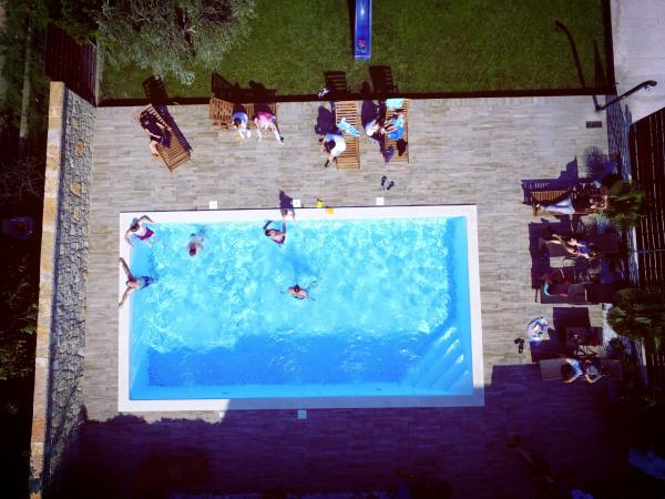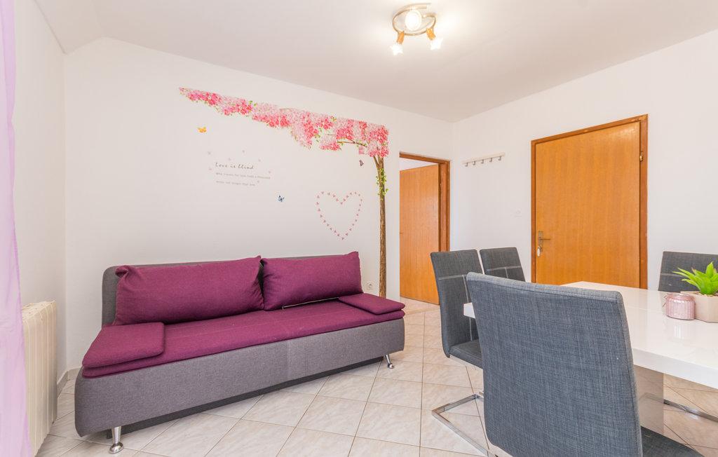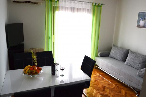 Pase sus vacaciones en uno de los apartamentos ubicados en el primer y segundo piso de la casa familiar. Hay una piscina compartida y una taberna donde puedes relajarte y preparar tus platos favoritos. Puede tomar su café de la mañana en el café bar ubicado en la planta baja. En la parcela también hay un gran aparcamiento privado, una bolera y la playa de arena es de aprox. 2 km. Biograd na moru fue la sede de los reyes croatas en el siglo XI y es conocida por su cocina tradicional dálmata y sus hermosas playas. Gracias a su ubicación, es un punto de partida perfecto para recorrer los numerosos parques nacionales de la zona. Estos apartamentos serán ideales para familias con niños porque tiene un gran patio y no está ubicado en una calle muy transitada. Siempre puede contar con paz y tranquilidad.