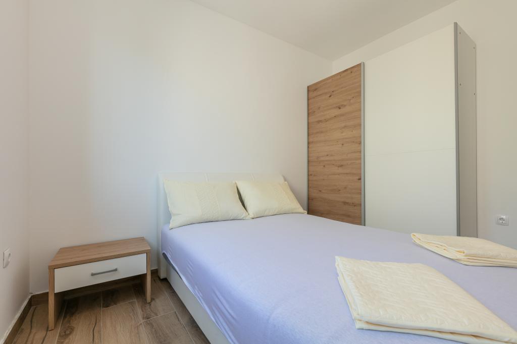 Mi calificación es 8/10. El asentamiento es tranquilo y la playa está relativamente cerca. El apartamento está ordenado, limpio y bastante espacioso. La cocina es demasiado pequeña y la cocina eléctrica es muy mala, por lo que tardamos el doble en preparar el almuerzo que si tuviéramos gas. La terraza del apartamento es genial, bastante grande y por la tarde todo el tiempo a la sombra. El apartamento no tenía ningún tendedero para secar la ropa y las toallas, sino sólo una pequeña extensión en la pared de la terraza, lo cual es insuficiente. Recibimos 4 toallas más pequeñas.