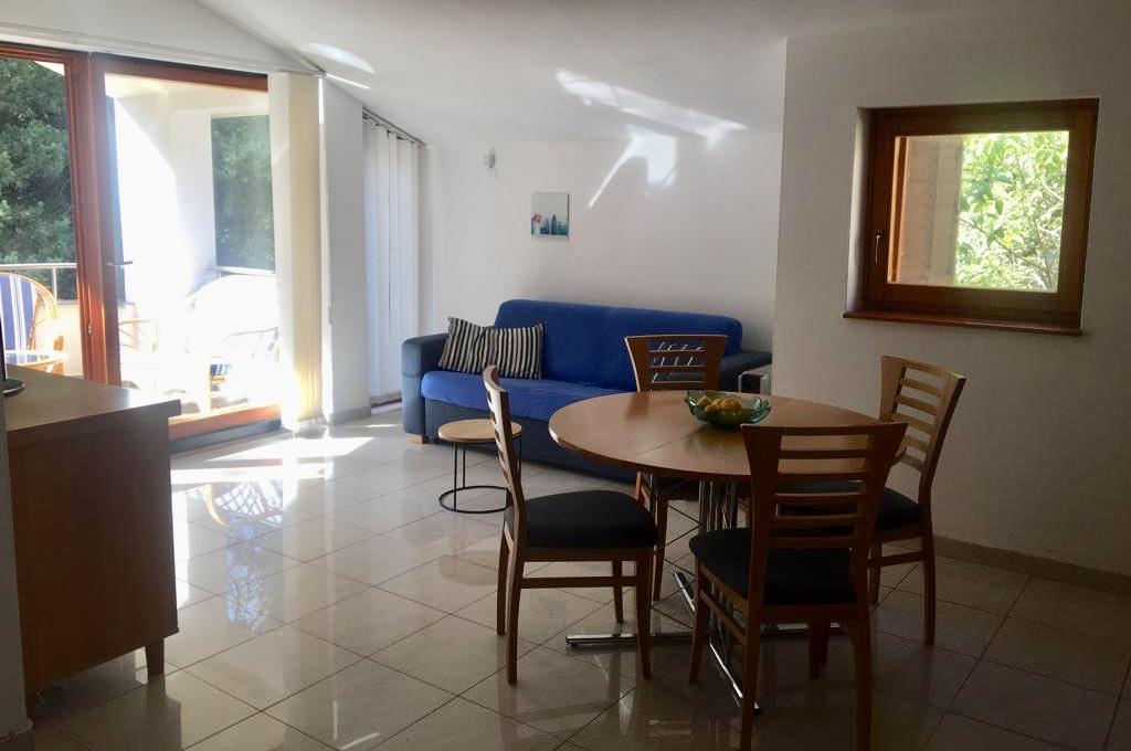 el apartamento tiene dos dormitorios, salón, cocina con comedor, baño con ducha y WC. Dispone de parking propio, wifi, está climatizado y equipado, entre otras cosas, con lavadora, y además cuenta con una gran terraza y barbacoa. Desde la cocina se accede a la parte cubierta de la terraza, que ofrece la posibilidad de cenar al aire libre. La terraza está oculta a la vista por una valla verde y ofrece la posibilidad de tomar el sol. El apartamento está situado en un bosque de pinos, a unos 250 m de la playa principal (playa Soline) de Biograd y, al mismo tiempo, no está lejos del centro de Biograd (frente al mar). En las inmediaciones del apartamento (a unos 150 m del apartamento) hay canchas de tenis y otras instalaciones.