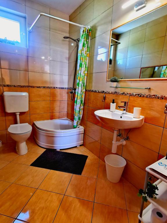 Apartamentos de playa Roza ubicados en primera fila de la playa de Bošana en un patio lleno de vegetación, cerca de todos los servicios. En las inmediaciones hay tiendas, restaurantes y bares y el centro de la ciudad está a menos de 10 minutos a pie. Estacionamiento seguro en el patio para vehículos de tamaño estándar.