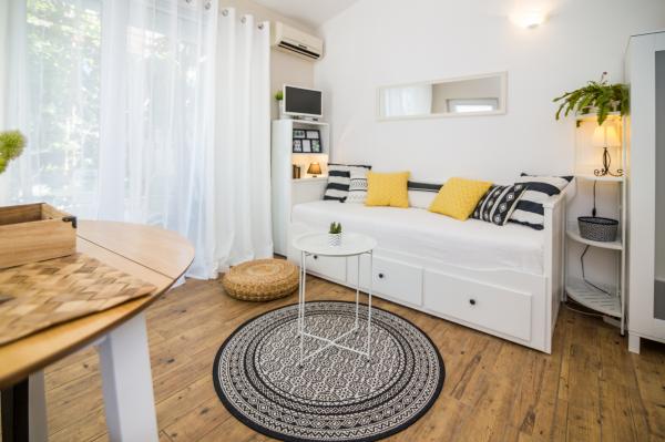 Apartamentos confortables, limpias y con aire acondicionado están situados cerca del centro y de su puerto Biograd, ubicada aproximadamente a 150 m del mar, tan cerca de la hermosa playa de arena de playa con un parque infantil, cafetería y restaurante. Los apartamentos tienen una terraza privada con un jardín donde hay una barbacoa para su uso. El supermercado más cercano se encuentra en la primera casa vecina.