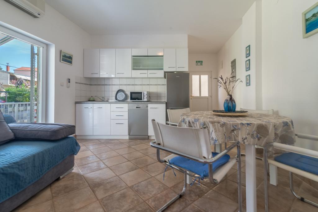 Edificio de apartamentos Lucija ubicado en una excelente ubicación en una calle tranquila y pacífica a solo 5 min. A un corto paseo se llega a la playa principal de la ciudad, Dražica, declarada la playa mejor equipada de la República de Croacia, así como a todas las demás instalaciones necesarias para unas agradables vacaciones de verano, algo que abunda en Biograd. La casa consta de 4 apartamentos, todos de 40 m2, y constan de un dormitorio con cama de matrimonio, un salón con sofá cama para 2 personas, una cocina totalmente equipada con lavavajillas, un baño con ducha y un aseo, lavadora y espacio de entrada. Los apartamentos de la 1ª planta A-1 y A-2 disponen de amplias terrazas de 30 m2, y los de la 2ª planta A-3 y A-4 disponen de balcones de 12 m2. Todos los apartamentos están magníficamente equipados: aire acondicionado, WiFi, SatTv, camas con colchones viscoelásticos, cocinas con lavavajillas, grandes frigoríficos con congelador, microondas y cafetera/tetera, y todo lo necesario para preparar y servir comidas. Aparcamiento y cocina de verano con gran barbacoa en el patio.