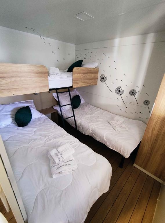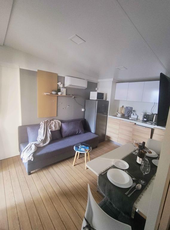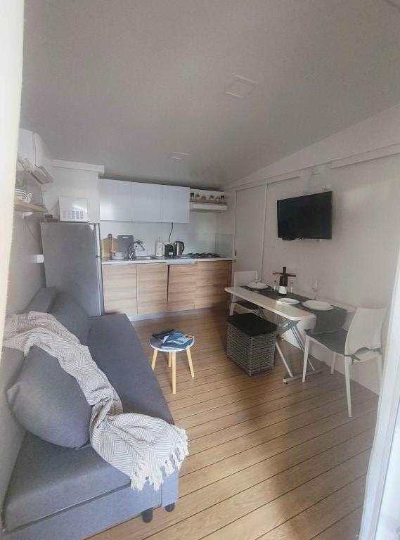 Nuestra casa móvil modernamente equipada ofrece alojamiento confortable para hasta 7 personas, con 2 amplios dormitorios, salón con sofá cama y 2 baños. Disfrute de la amplia terraza cubierta, equipada con comedor y sala de estar al aire libre, ideal para largas veladas, mientras cocina a la parrilla en nuestra gran parrilla de gas y estufa exterior. La terraza cubierta está rodeada de pinos y disfruta de la suave brisa del mar. A un lado de la terraza hay un amplio comedor y, al otro, nuestra sala de estar al aire libre ofrece una cómoda zona de estar y un columpio para disfrutar al máximo. Además, en la zona abierta, podrá disfrutar del sol o de la sombra en una amplia y cómoda tumbona con una mesa pequeña, donde también podrá disfrutar de cócteles, una bebida fría o leer un libro. La casa se encuentra a 3 minutos de la hermosa playa.