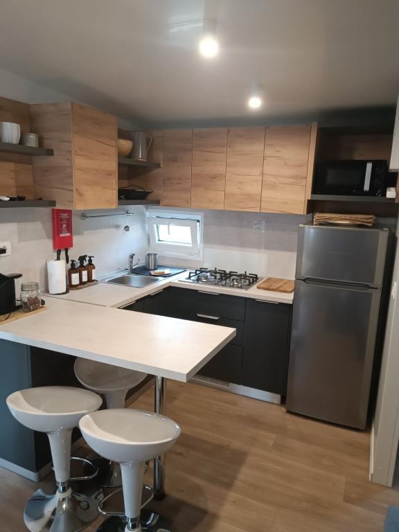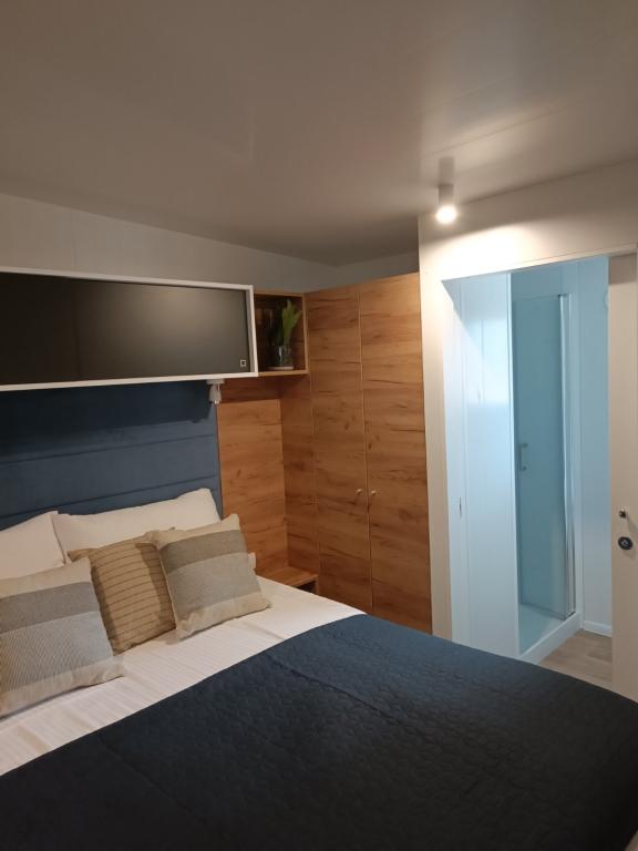 La moderna casa móvil InnMare 646, situada en una zona tranquila del camping Soline, en un pinar, es el lugar perfecto para unas vacaciones en familia. Con una superficie de 32 m², consta de un dormitorio con cama doble, un dormitorio con dos camas individuales, un salón con sofá cama (para 1 o 2 personas), dos baños independientes con aseo, una terraza de 32 m², un pequeño patio y una plaza de aparcamiento. La propiedad está completamente amueblada; la cocina, además del equipamiento estándar, incluye microondas, hervidor eléctrico y cafetera expreso. La terraza cuenta con una mesa de comedor adicional y tumbonas para una siesta perfecta con el aroma de los pinos. Junto a la propiedad hay una barbacoa, que también forma parte del equipamiento, a disposición de los huéspedes. Junto a la propiedad también hay una plaza de aparcamiento para un vehículo. ¡Bienvenidos a InnMare 646, una moderna propiedad ideal para unas vacaciones familiares tranquilas e idílicas en un tranquilo pinar, cerca del mar, las playas y Biograd na Moru!