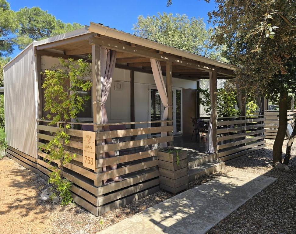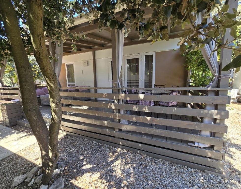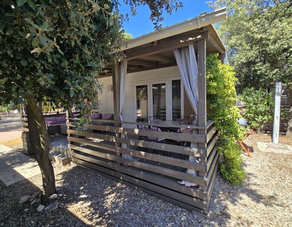 Casa móvil de 30 m² totalmente equipada con amplia terraza y plaza de aparcamiento. Ubicada en una zona tranquila del camping Soline, cerca del bullicio de restaurantes, cafeterías y la playa, pero a la vez lo suficientemente cerca.