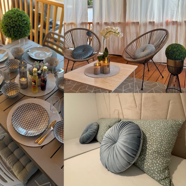 Una hermosa casa móvil para 6 personas, ubicada a 2 minutos de hermosas playas de guijarros y de todos los servicios, rodeada de un denso bosque de pinos, que garantiza una agradable estadía en sombra natural. Está equipado con dos dormitorios y una cama doble adicional en el salón, acompañado de dos baños y una cocina totalmente equipada - lavavajillas, cafetera, tostadora, hervidor, microondas. La amplia terraza con zona de salón y una gran mesa también está equipada con barbacoa, ducha exterior y hay tablas de paddle surf y patinetes eléctricos disponibles. Justo al lado de la casa hay una panadería, una tienda, cafeterías y restaurantes. Se admiten mascotas y para los niños hemos preparado un set de bebé: una trona y una cuna. El aparcamiento junto a la casa es gratuito.