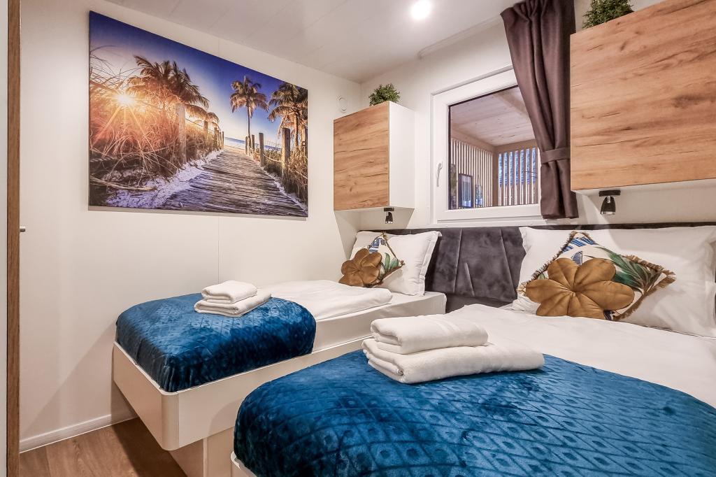 Nuestra casa móvil modernamente equipada ofrece alojamiento confortable para hasta 6 personas, con 2 amplios dormitorios, sala de estar con sofá cama y 2 baños. Disfrute de la amplia terraza cubierta con comedor y sala de estar al aire libre, ideal para largas veladas. Aquí podrá jugar a los dardos o relajarse frente al televisor grande, mientras asa en nuestra gran parrilla de gas y estufa exterior. La terraza cubierta está rodeada de pinos y recibe la suave brisa del mar. A un lado de la terraza hay un amplio comedor con un cómodo sofá y sillones aún más cómodos, mientras que al otro lado, nuestra sala de estar al aire libre ofrece una cómoda zona de estar donde no solo podrá relajarse, sino también disfrutar de sus programas favoritos en el enorme televisor con canales de televisión por satélite, Netflix y HBO GO. La casa se encuentra a 3 minutos de la hermosa playa.