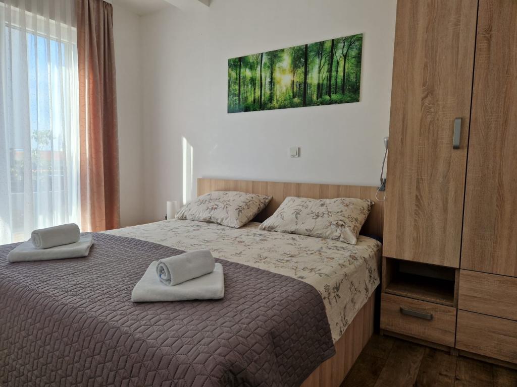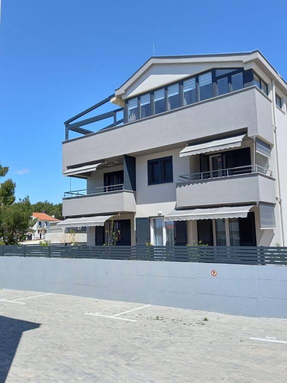 Villa Toni es un edificio de nueva construcción. Los apartamentos están muy bien decorados, modernos y bien ventilados. Cada apartamento tiene una cocina totalmente equipada. En cada salón hay un sofá cama. Las habitaciones están equipadas con amplias camas dobles y colchones cómodos y de calidad. Todos los apartamentos tienen aire acondicionado y lavadoras. Hay toldos (frontales y laterales) en las terrazas y balcones. La villa está situada en una zona tranquila de la ciudad. Se proporciona una plaza de aparcamiento en el patio. Hay varios supermercados, playas, restaurantes y cafés cerca. Se encuentra a 10 minutos a pie del centro ya 5 minutos de la playa.