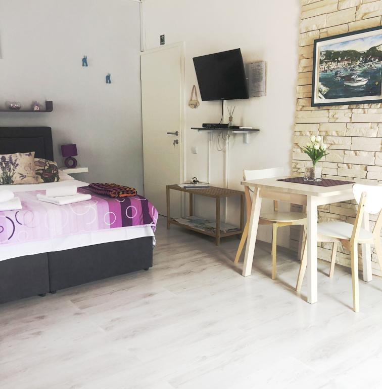 Somos Ana, Brane, Kaya y Petra. ¡Una familia de América del Sur, con raíces en Croacia! La casa de playa de Abuela es nuestro pequeño tesoro. Nuestra abuela croata nos autorizó a hacer de su casa de playa en Brela, un lugar para vivir y recibir invitados. En sus sueños, esta sería una forma de ver a su nieto viviendo en este lugar mágico. En 2011, decidimos comenzar este proyecto. Hemos reformado toda la casa y remodelado las grandes habitaciones en apartamentos para alquiler de vacaciones. Hemos creado apartamentos temáticos, con decoraciones y estilo que cuentan nuestra historia. Cada apartamento tiene una decoración única y recuerda nuestros lugares de nacimiento (Ana en Brasil, Brane en Argentina, Kaya en Croacia y algunas raíces italianas). Así diseñamos Apartment Caipirinha, Tango, Adriatic y Mamma Mia. Además, ofrecemos algunos servicios de Inn como desayunos (a pedido) y equipamiento de playa. Además, encontrará un hermoso jardín con piscina infinita con vista al mar