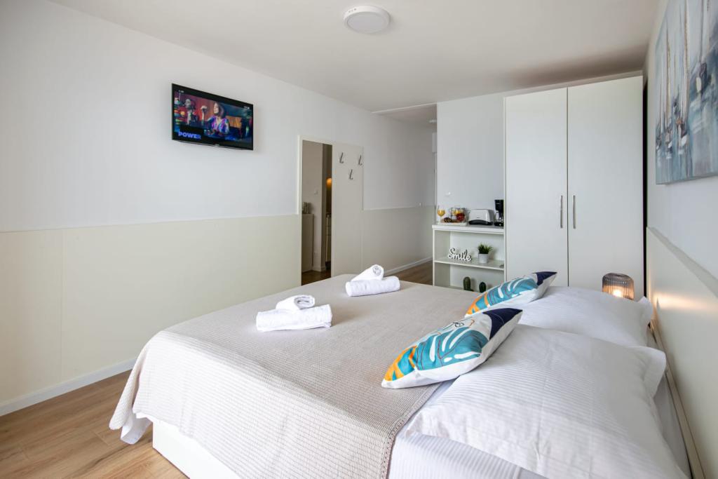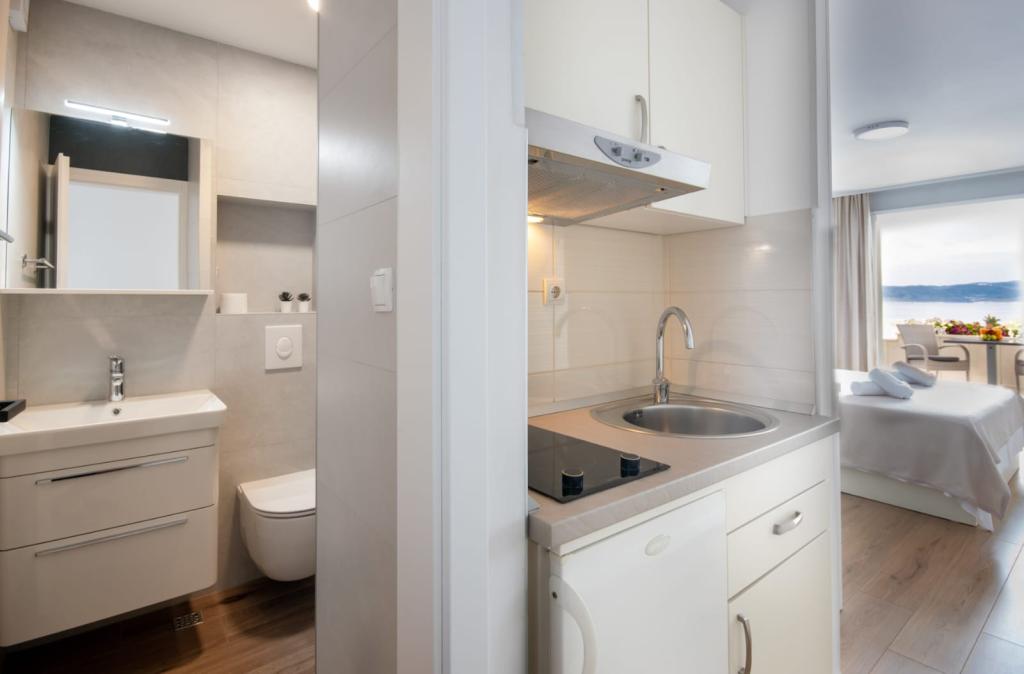 Apartamentos y habitaciones totalmente equipados y con mobiliario moderno en Brela, a tan solo 200 metros del mar, a 150 metros del centro y de todos los demás servicios importantes del pueblo.