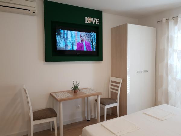 El Guesthouse Dominović, situado en Brela, a 200 metros de la playa de Maestral y a 300 metros de la playa de Soline, ofrece alojamiento con jardín, wifi gratis y estacionamiento privado gratuito. El edificio ofrece vista al mar. Las habitaciones están equipadas con aire acondicionado, TV de pantalla plana con canales vía satélite, nevera, hervidor eléctrico, ducha, secador de pelo y armario. Todas las habitaciones de este alojamiento privado tienen su propio baño y ropa de cama. El alojamiento privado Dominović se encuentra a 400 metros de la playa de Punta Rata ya 800 metros de Brela Rock. El aeropuerto de Split más cercano está a 88 km del establecimiento. Esta es la parte favorita de nuestros huéspedes de 'Brela', según las críticas imparciales.