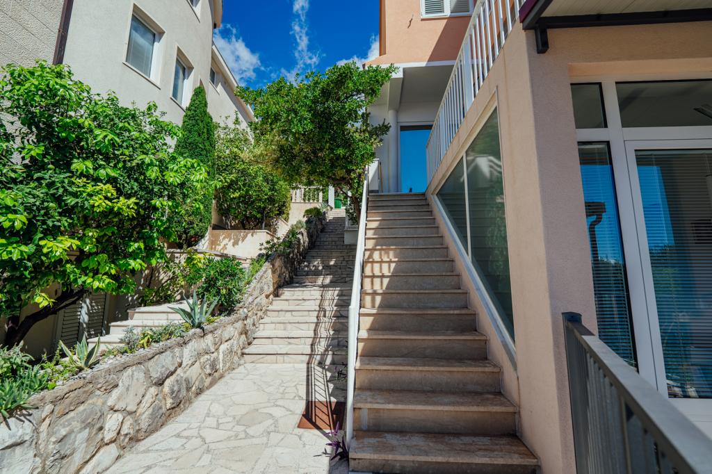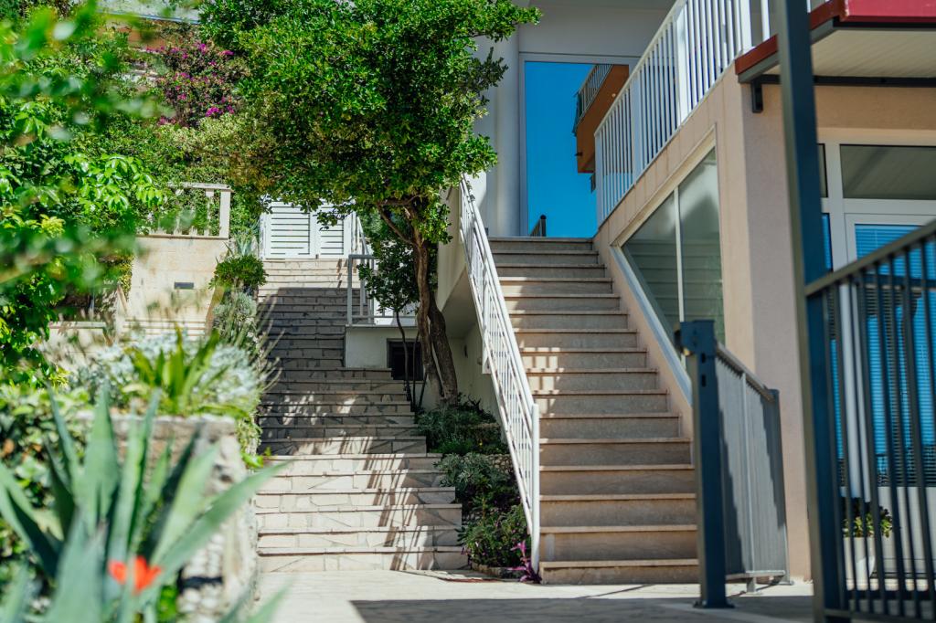 Tasa turistica está incluida en el precio.Recomiendo el apartamento A5+1. Llegamos una familia de cinco personas, con tres hijos adolescentes. El alojamiento, la comunicación con los propietarios, el aspecto y la limpieza del apartamento fueron impecables. La cocina podría haber sido un poco más grande (la encimera), pero todo lo demás estuvo perfecto. El propietario, Milan, fue increíblemente amable y servicial. Tras subir decenas de escaleras, llegamos a la playa, pero ese es el encanto de Brela. Hay tiendas y restaurantes cerca.