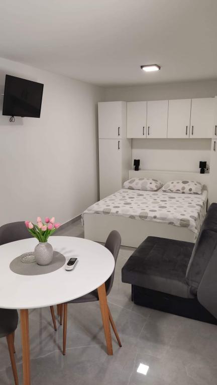 Los apartamentos, recién reformados, se encuentran a 5 minutos a pie de la playa y a 10 minutos del centro y de los restaurantes. El aparcamiento frente a la casa está incluido en el precio. Las playas de Brela ofrecen abundante sombra natural, ideales para vacaciones con niños.