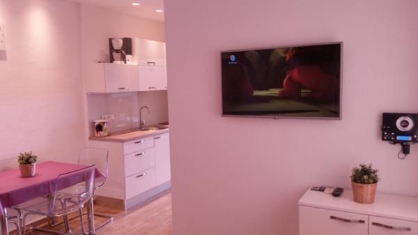 Studio es muy bonito y moderno, muy limpio. equipamiento de cocina completo. Cerca de la playa y las tiendas, zona tranquila. El aparcamiento está en la casa. Nos quedamos con un niño pequeño y que era realmente genial, lo recomiendo 100%. Los anfitriones son muy agradable y servicial.