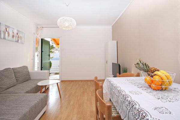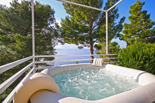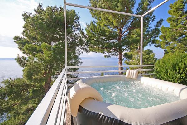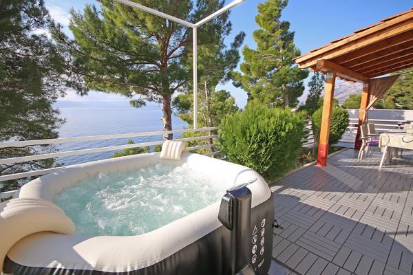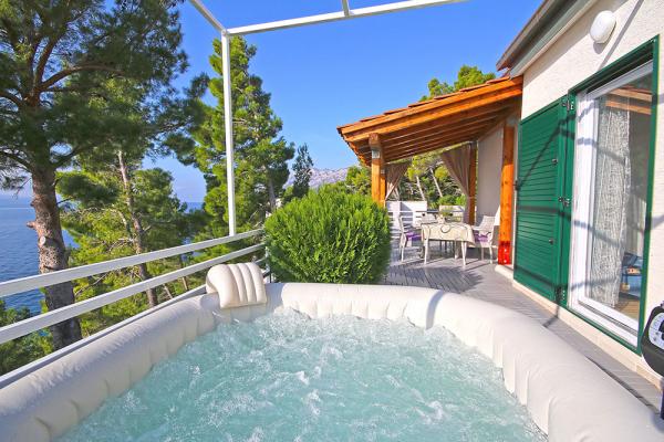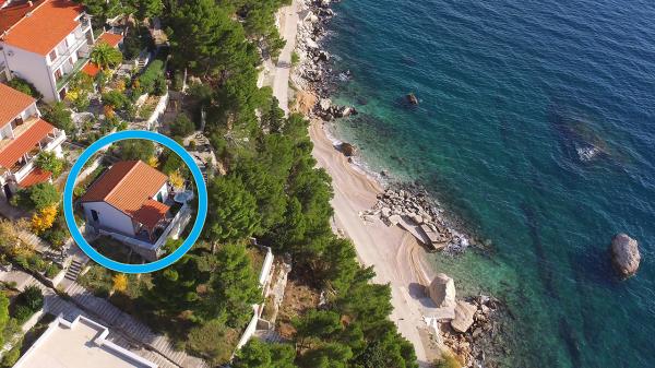 Totalmente equipado toda la casa en una zona tranquila de Brela. No hay otros huéspedes o al propietario, entrada independiente, completamente cercada proporciona privacidad superior. La casa se encuentra a sólo 40 metros de la playa. La casa está equipada con un máximo de 5 personas. Una habitación para tres personas y un sofá cama en el salón para dos personas. La casa tiene una amplia terraza para el jacuzzi y vista al mar. Por debajo de la casa es un paseo de 6 kilómetros de longitud y proporciona un paseo romántico con el sonido de las olas!