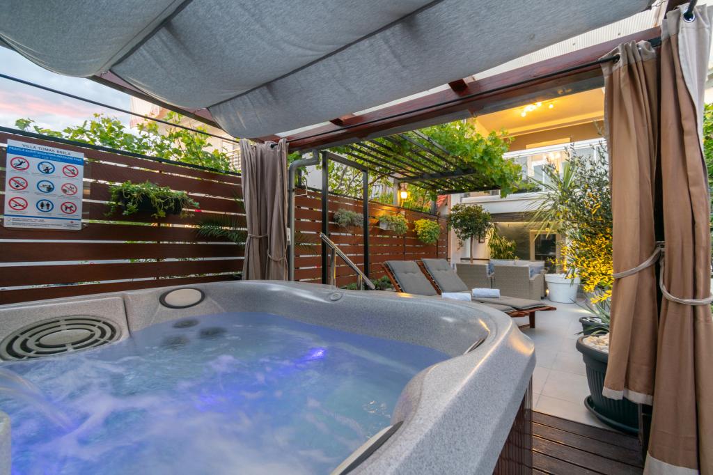 Villa Tomaš Brela se encuentra en una zona tranquila, a 2 km del centro de Brela. El apartamento 1 tiene capacidad para 6 + 2 personas, y la casa pequeña, el apartamento 2, tiene capacidad para 2 personas. Los apartamentos están completamente equipados para que disfrute de sus vacaciones sin preocupaciones. El apartamento 1 es un apartamento de dos plantas con 4 dormitorios, 2 cocinas, 2 baños y terraza. El apartamento 2 cuenta con cocina, dormitorio, baño y balcón. Los huéspedes de Villa Tomaš tienen a su disposición piscina y jacuzzi. Hay aparcamiento gratuito junto al alojamiento. La playa de Podcrkavlje está a 200 metros del apartamento, así como el primer restaurante y chiringuito.