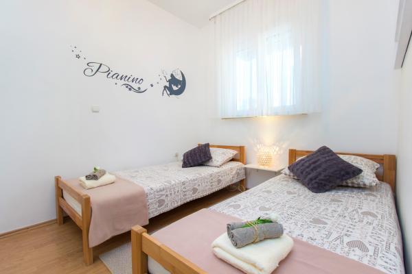 equipado apartamento moderno de 100 m2 ubicado en Brodarica, un tranquilo pueblo a pocos kilómetros de Sibenik. Apartamento Piano está situado a sólo 40 metros de la playa y tiene una vista al mar. Consta de dos dormitorios, baño, aseo, cocina totalmente equipada, amplio salón comedor y terraza.