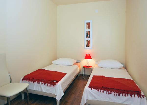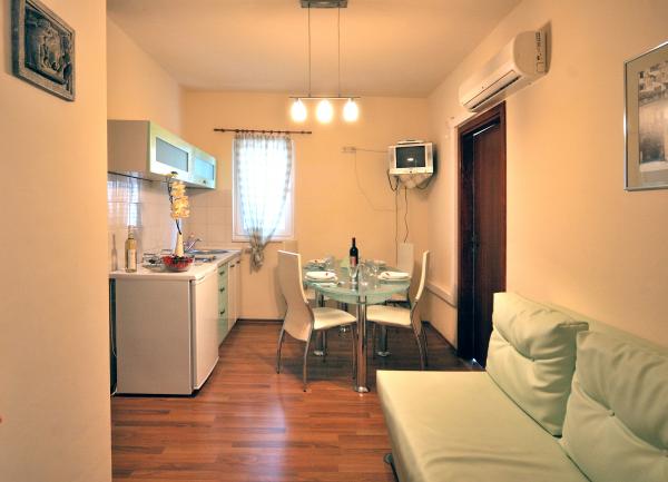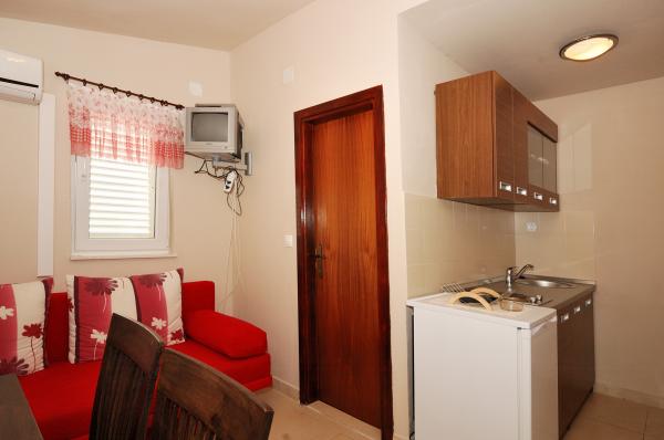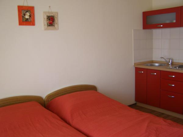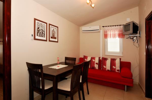Apartamentos agradable, recientemente renovadas, se encuentran en el mismo comienzo de Brodarica, a pocos minutos a pie de la playa de Brodarica. No muy lejos del apartamento se encuentra el Parque Nacional de Krka y la isla de Krapanj, la isla más bajo en el Mediterráneo con un spužarstva larga historia. Apartamentos Estudio consisten en una habitación donde hay una cocina, dos camas, un cuarto de baño, un balcón (todos excepto A5). Los apartamentos son adecuados para 4 personas consta de 2 dormitorios, baño, cocina-comedor con sofá cama, balcón. Los apartamentos son adecuados para 2-4 personas, consta de salón-cocina con sofá cama, habitación doble, baño, balcón (todos excepto A8). Todos los apartamentos disponen de aire acondicionado. Los huéspedes tienen acceso a la televisión, satélite, y la mayoría de las unidades tienen balcones con vistas al mar. Los huéspedes pueden utilizar la parrilla, y plaza de aparcamiento.